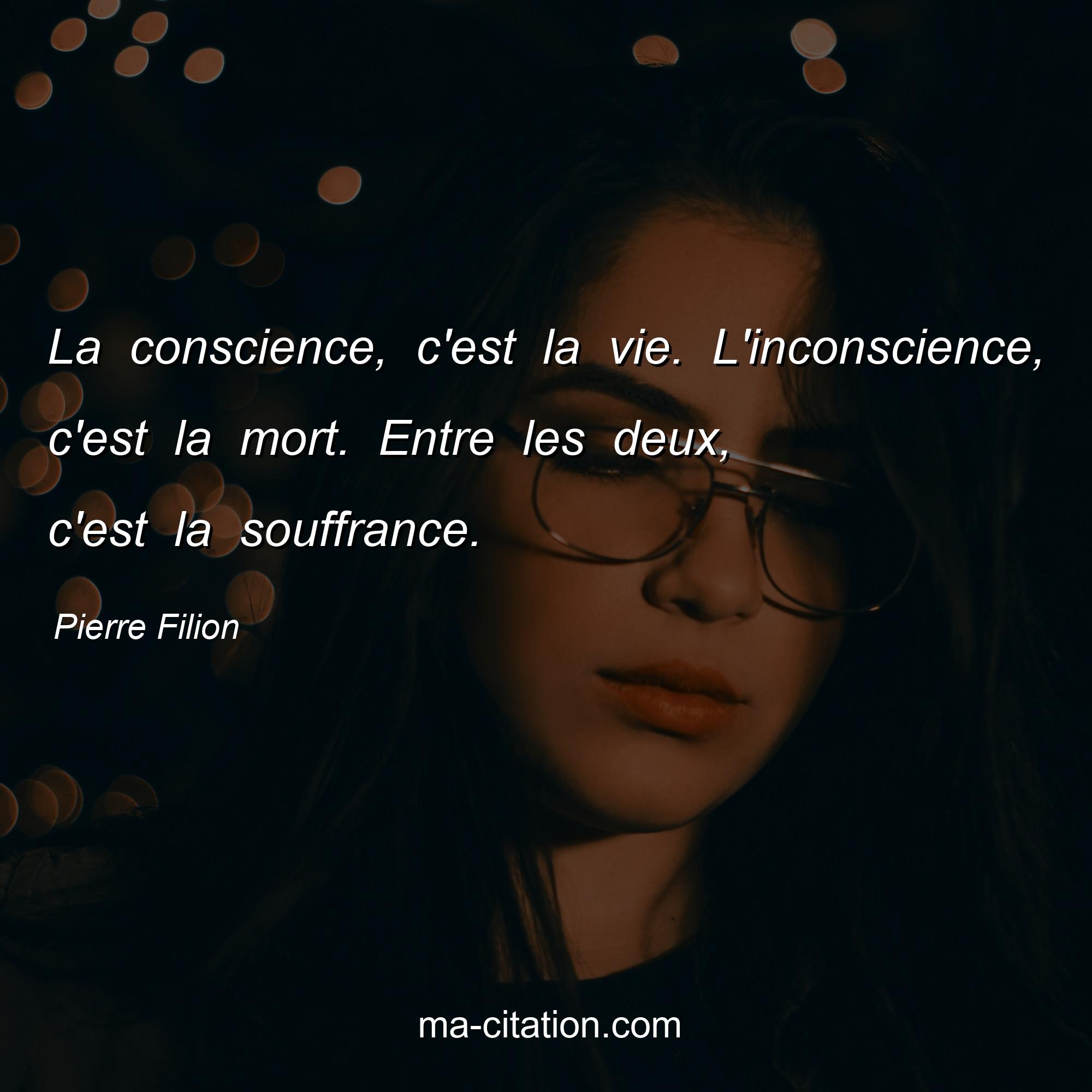 Citation sur la vie de Pierre Filion :La conscience, c'est la vie. L'inconscience, c'est la mort. Entre les deux, c'est la souffrance.