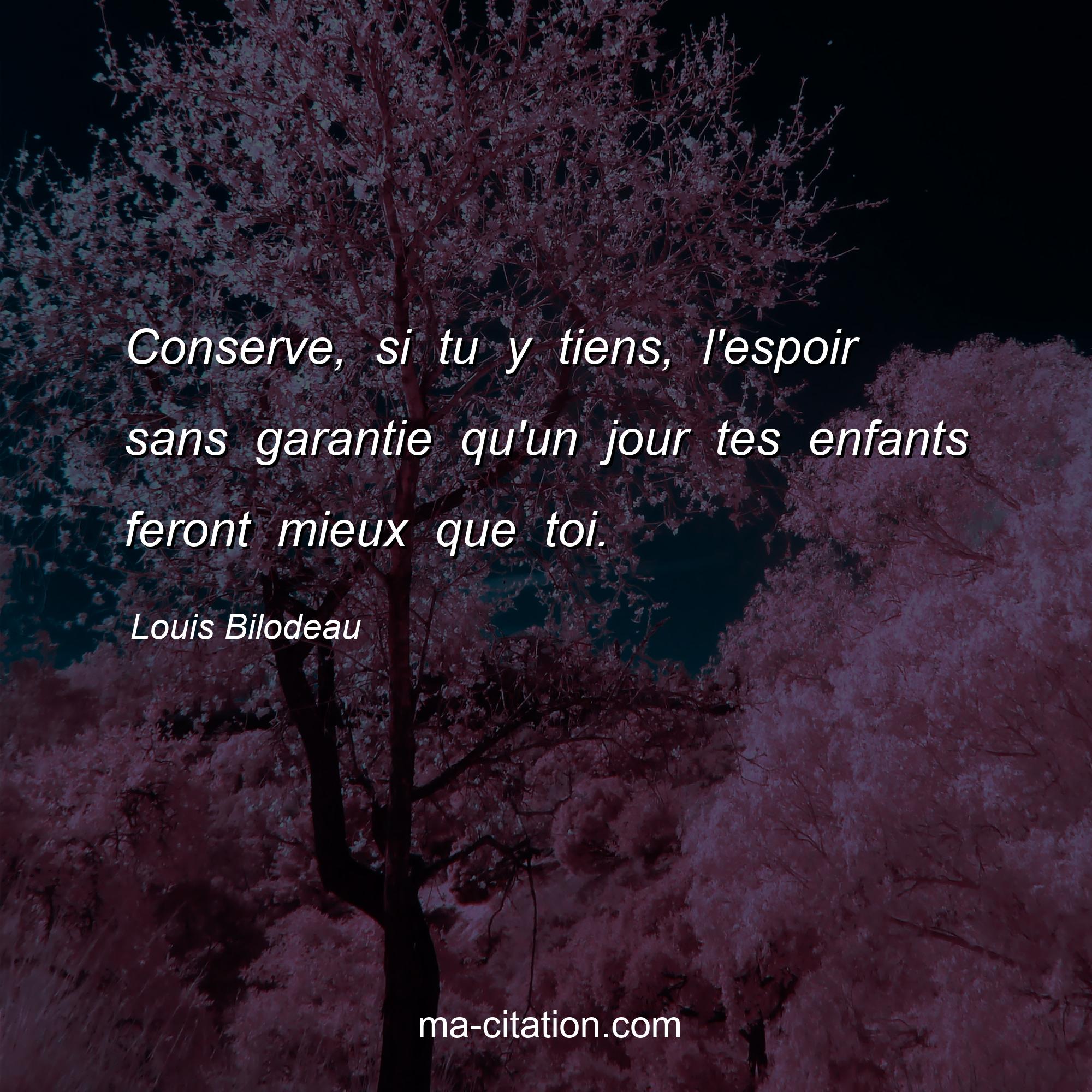 Louis Bilodeau est l'auteur de la citation sur la vie "Conserve, si tu y tiens, l'espoir sans garantie qu'un jour tes enfants feront mieux que toi.".