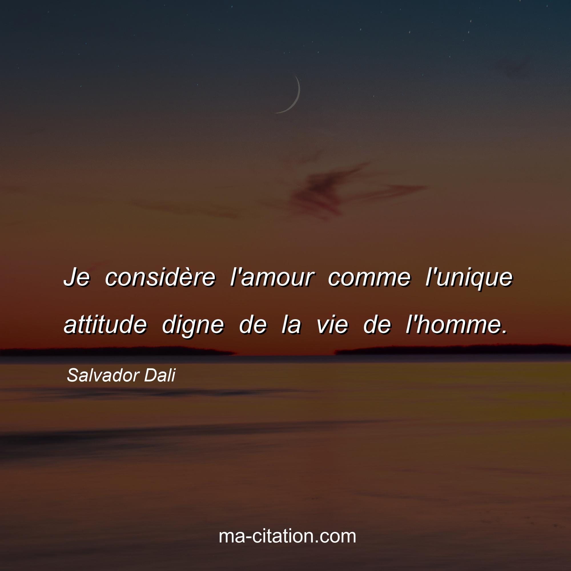 Citation sur la vie de Salvador Dali :Je considère l'amour comme l'unique attitude digne de la vie de l'homme.