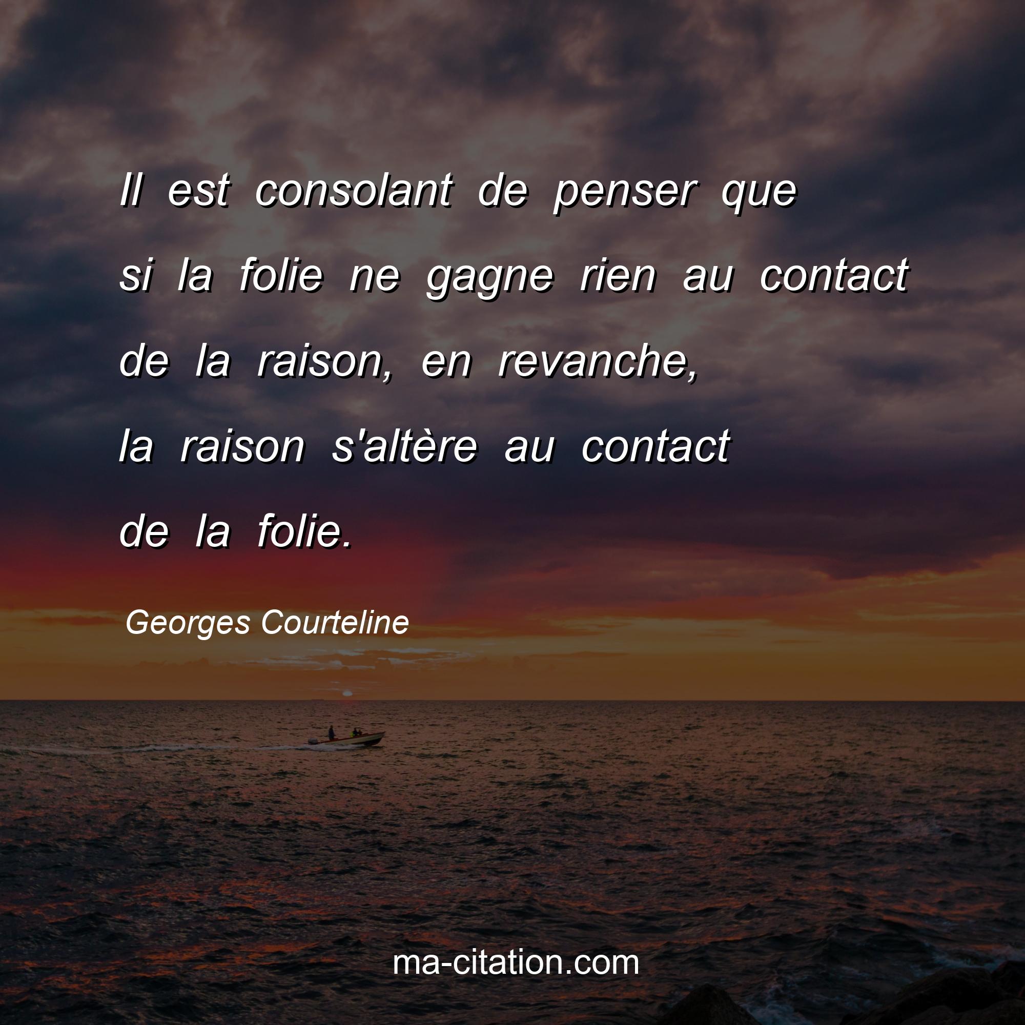 Citation sur la vie de Georges Courteline :Il est consolant de penser que si la folie ne gagne rien au contact de la raison, en revanche, la raison s'altère au contact de la folie.