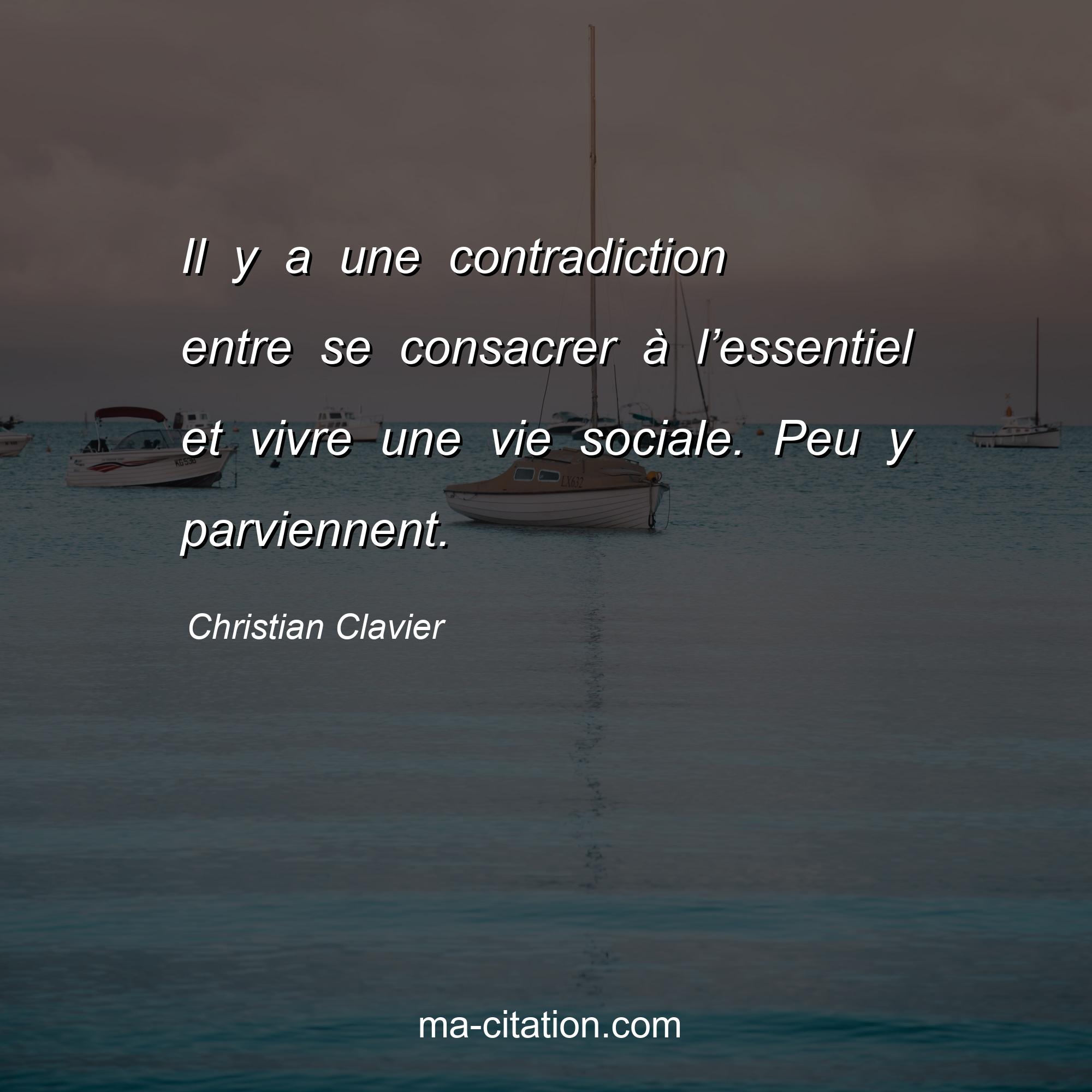 Citation sur la vie de Christian Clavier :Il y a une contradiction entre se consacrer à l’essentiel et vivre une vie sociale. Peu y parviennent.