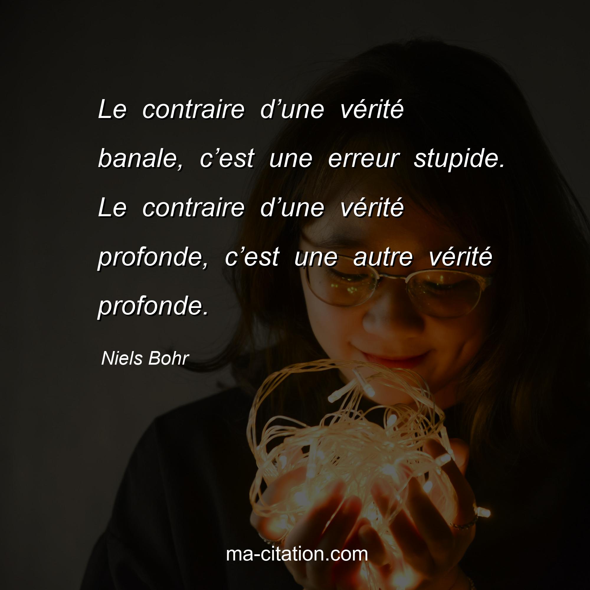 Citation sur la vie de Niels Bohr :Le contraire d’une vérité banale, c’est une erreur stupide. Le contraire d’une vérité profonde, c’est une autre vérité profonde.