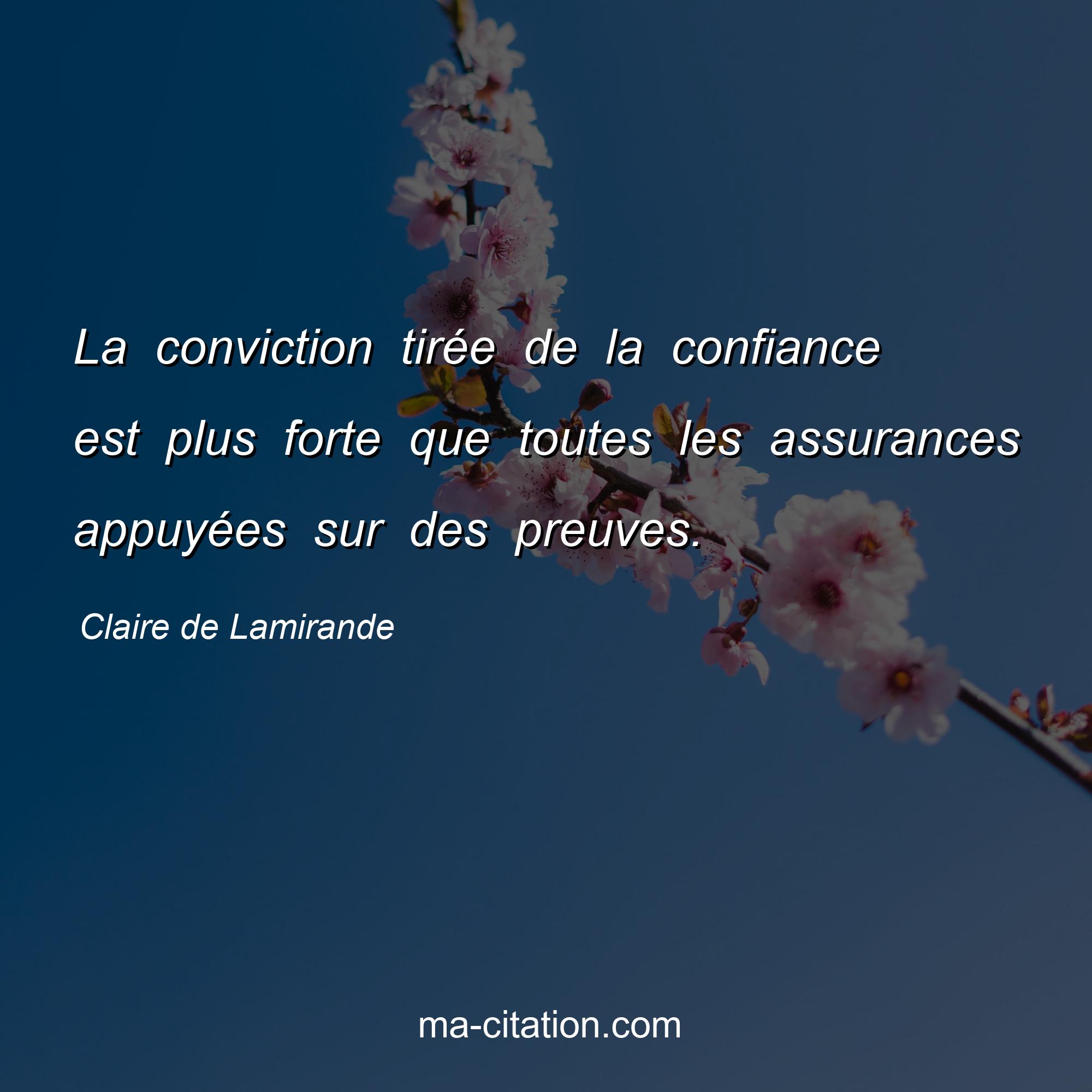 Claire de Lamirande est l'auteur de la citation sur la vie "La conviction tirée de la confiance est plus forte que toutes les assurances appuyées sur des preuves.".