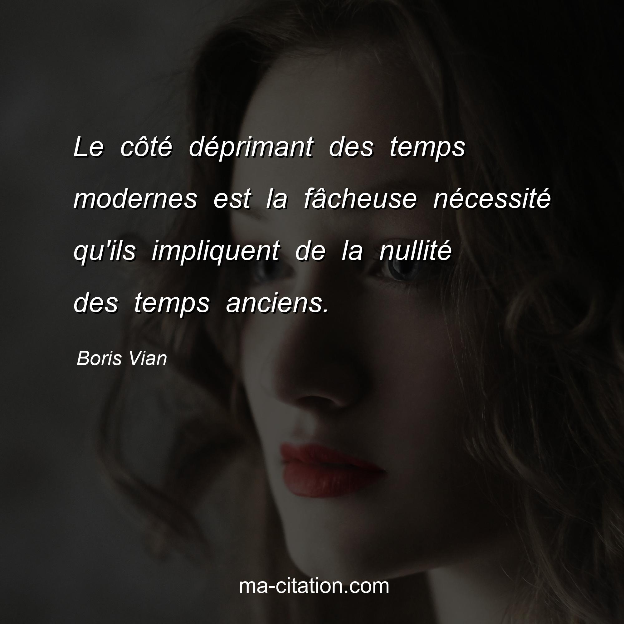 Citation sur la vie de Boris Vian :Le côté déprimant des temps modernes est la fâcheuse nécessité qu'ils impliquent de la nullité des temps anciens.