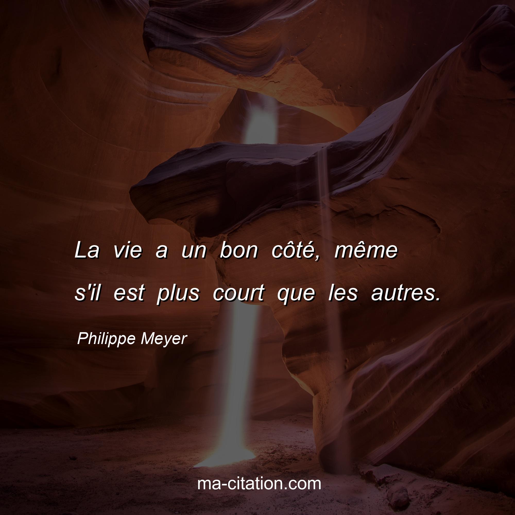 Philippe Meyer est l'auteur de la citation sur la vie "La vie a un bon côté, même s'il est plus court que les autres.".