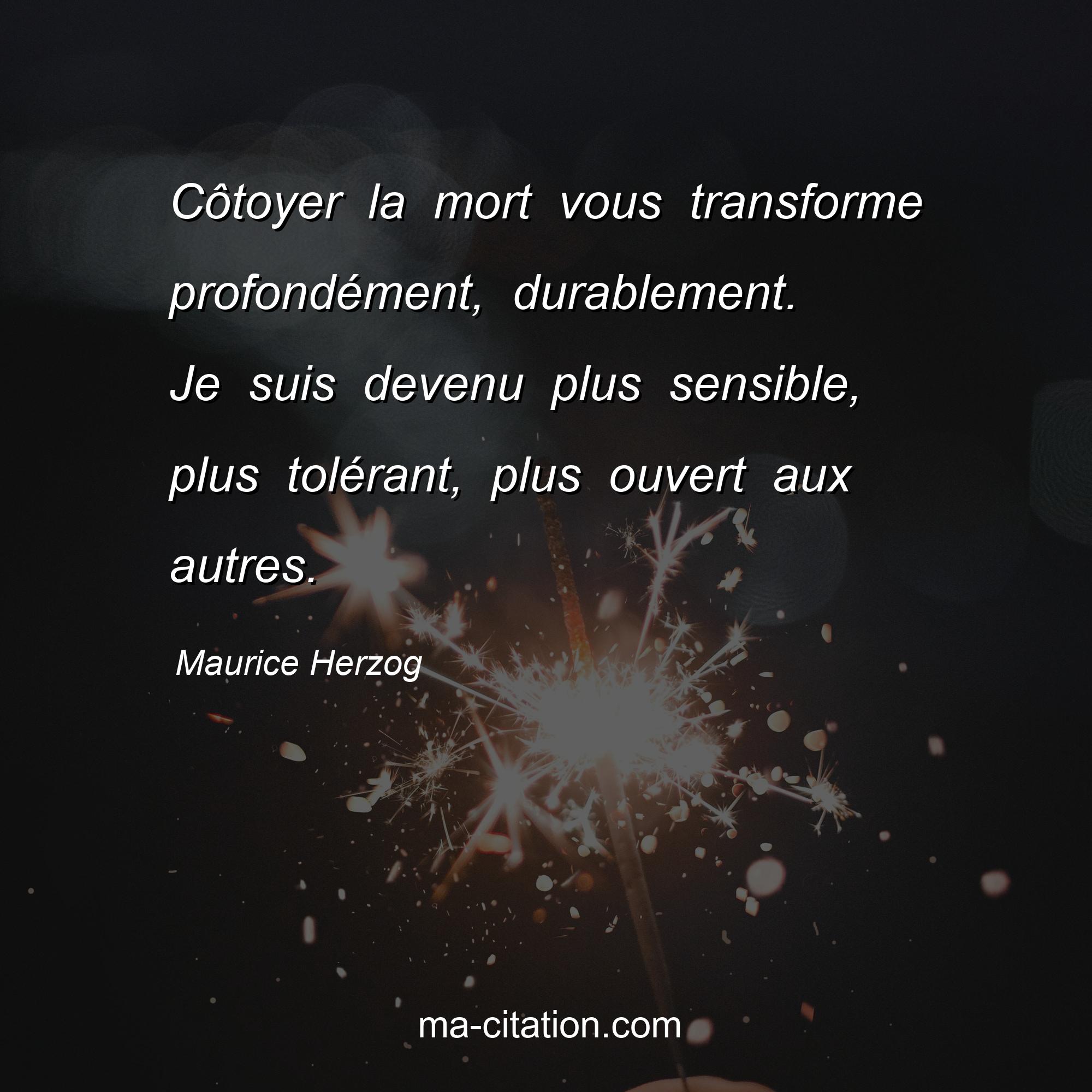 Maurice Herzog est l'auteur de la citation sur la vie "Côtoyer la mort vous transforme profondément, durablement. Je suis devenu plus sensible, plus tolérant, plus ouvert aux autres.".
