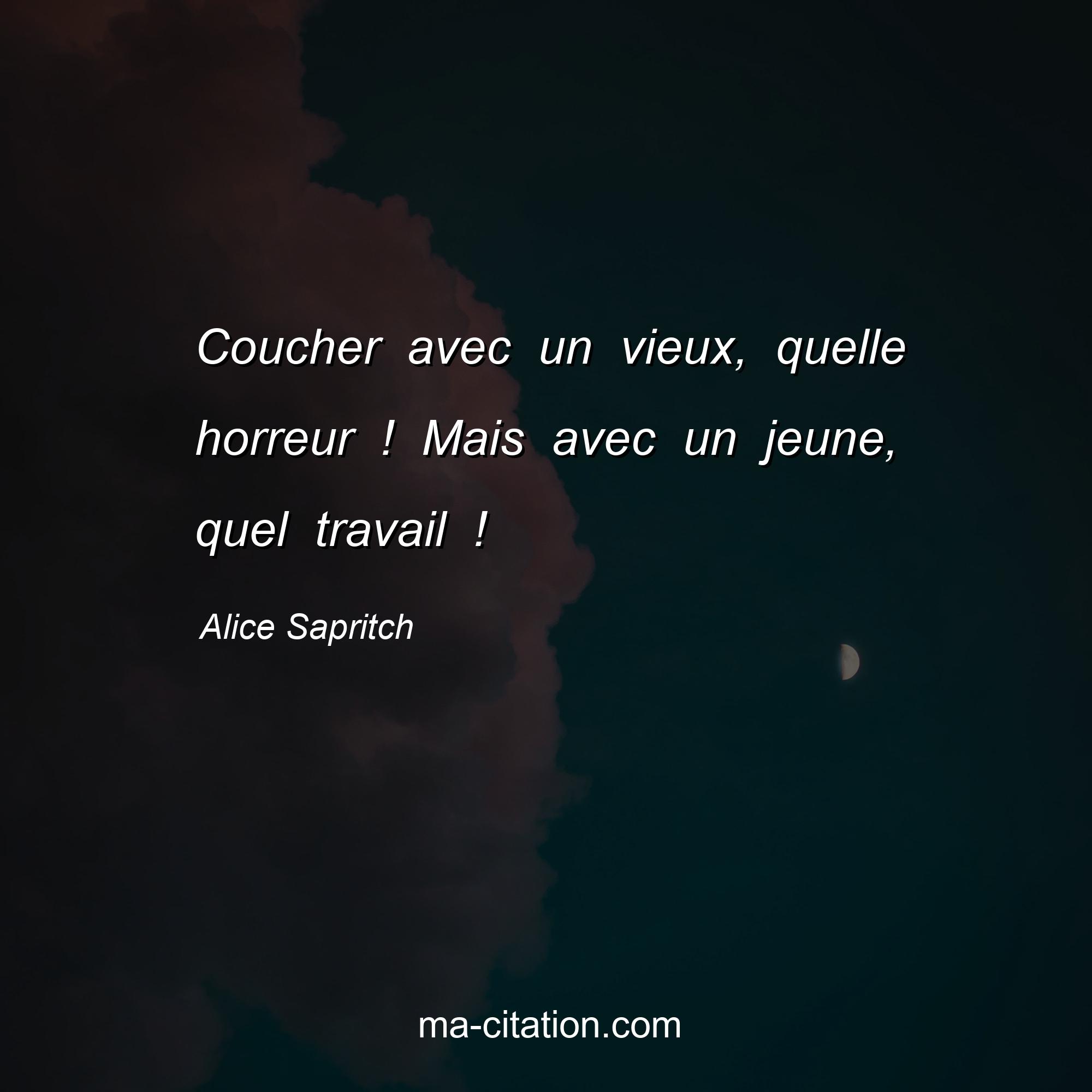 Citation sur la vie d'Alice Sapritch :Coucher avec un vieux, quelle horreur ! Mais avec un jeune, quel travail !