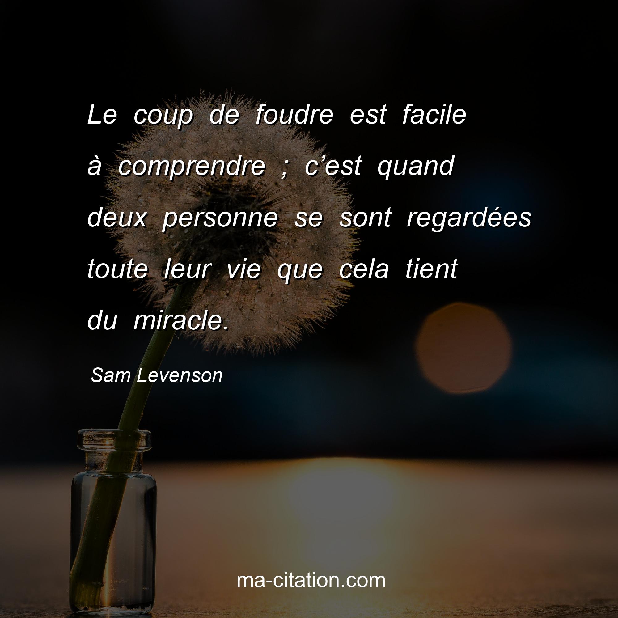 Citation sur la vie de Sam Levenson :Le coup de foudre est facile à comprendre ; c’est quand deux personne se sont regardées toute leur vie que cela tient du miracle.