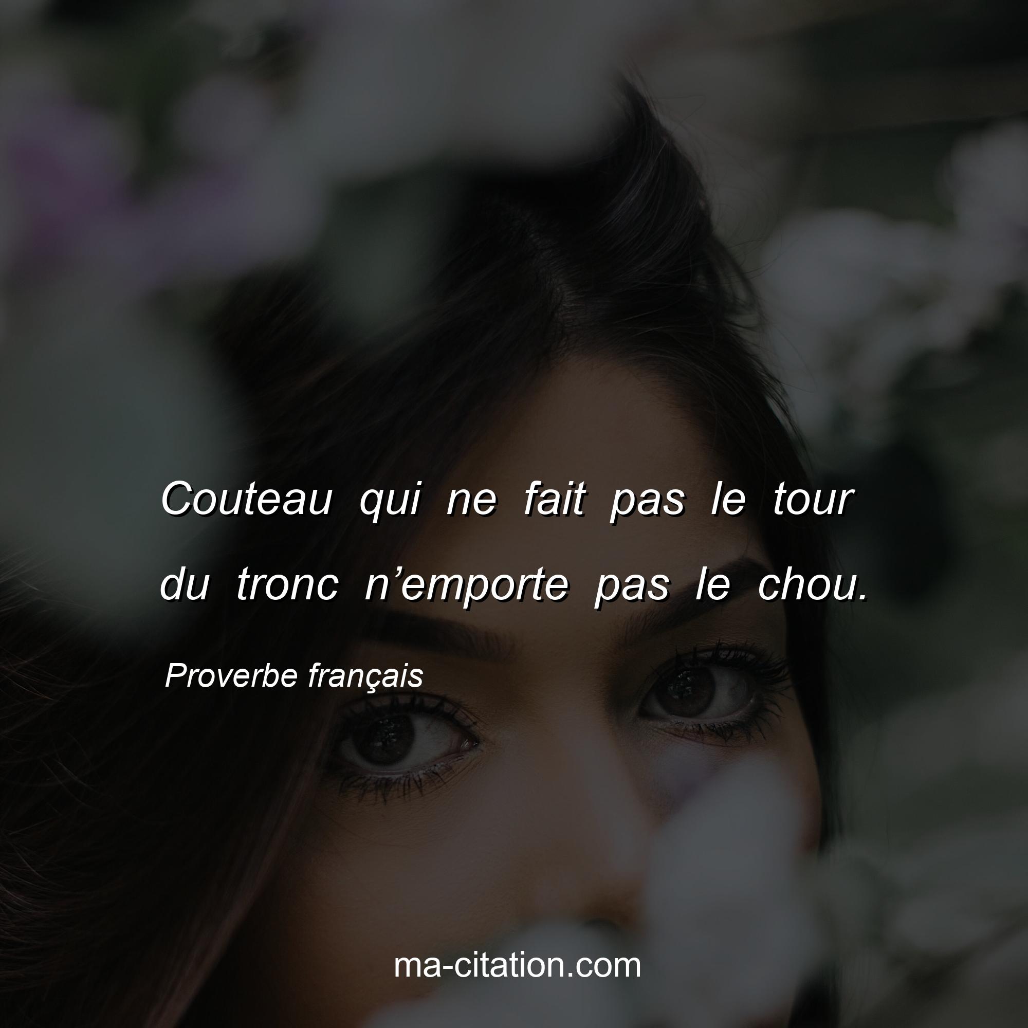 Proverbe français sur la vie :Couteau qui ne fait pas le tour du tronc n’emporte pas le chou.