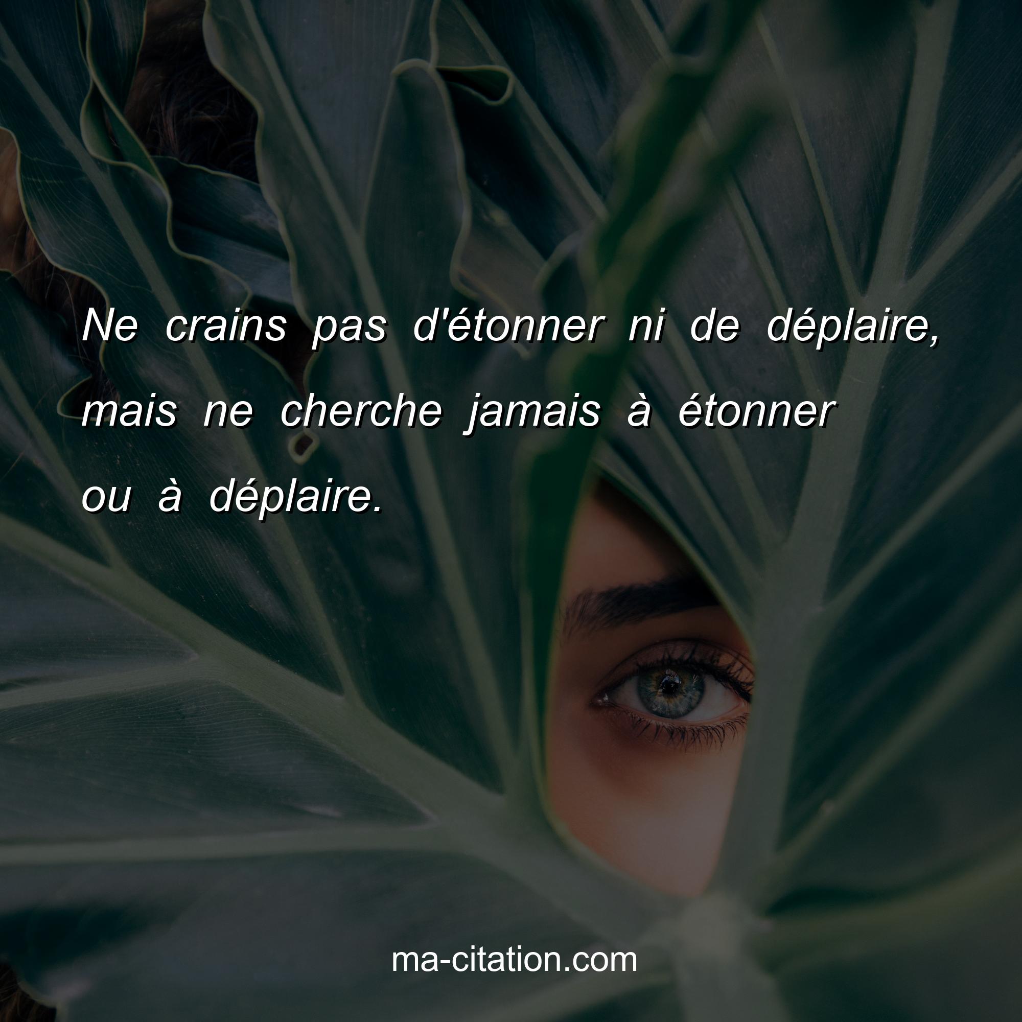 Ne crains pas d'étonner ni de déplaire, mais ne cherche jamais à étonner ou à déplaire.