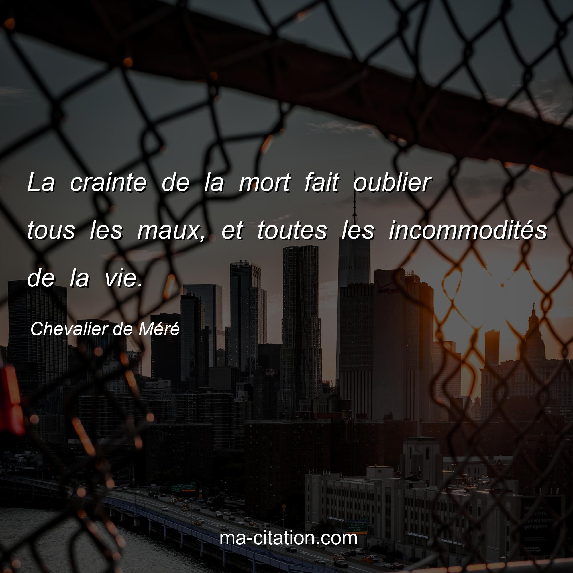 Citation sur la vie de Chevalier de Méré :La crainte de la mort fait oublier tous les maux, et toutes les incommodités de la vie.
