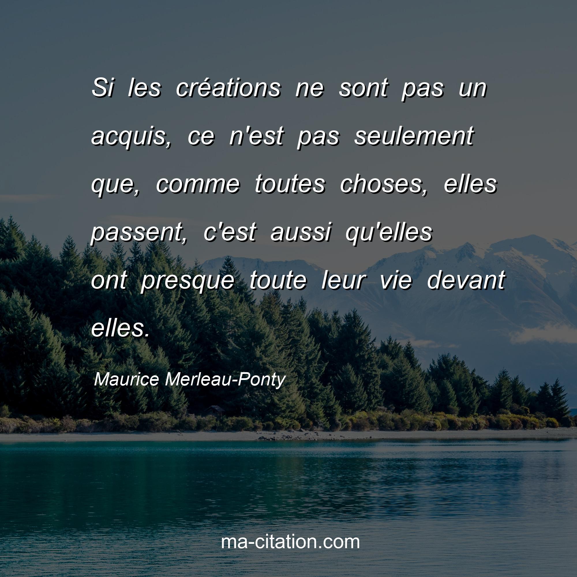 Citation sur la vie de Maurice Merleau-Ponty :Si les créations ne sont pas un acquis, ce n'est pas seulement que, comme toutes choses, elles passent, c'est aussi qu'elles ont presque toute leur vie devant elles.