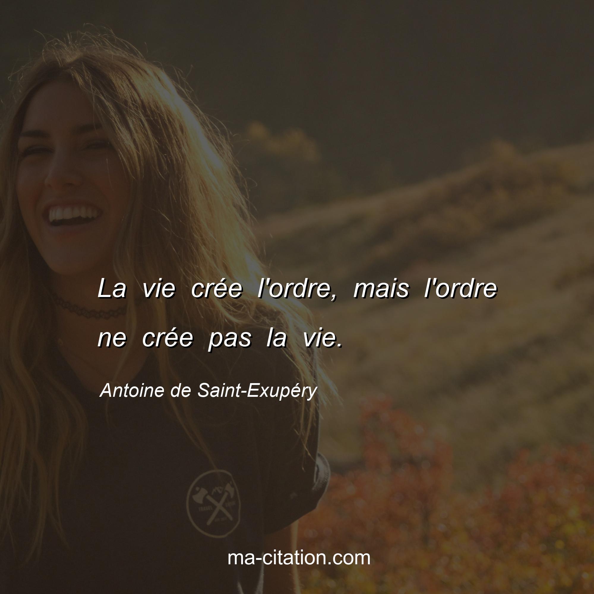 Antoine de Saint-Exupéry est l'auteur de la citation sur la vie "La vie crée l'ordre, mais l'ordre ne crée pas la vie.".