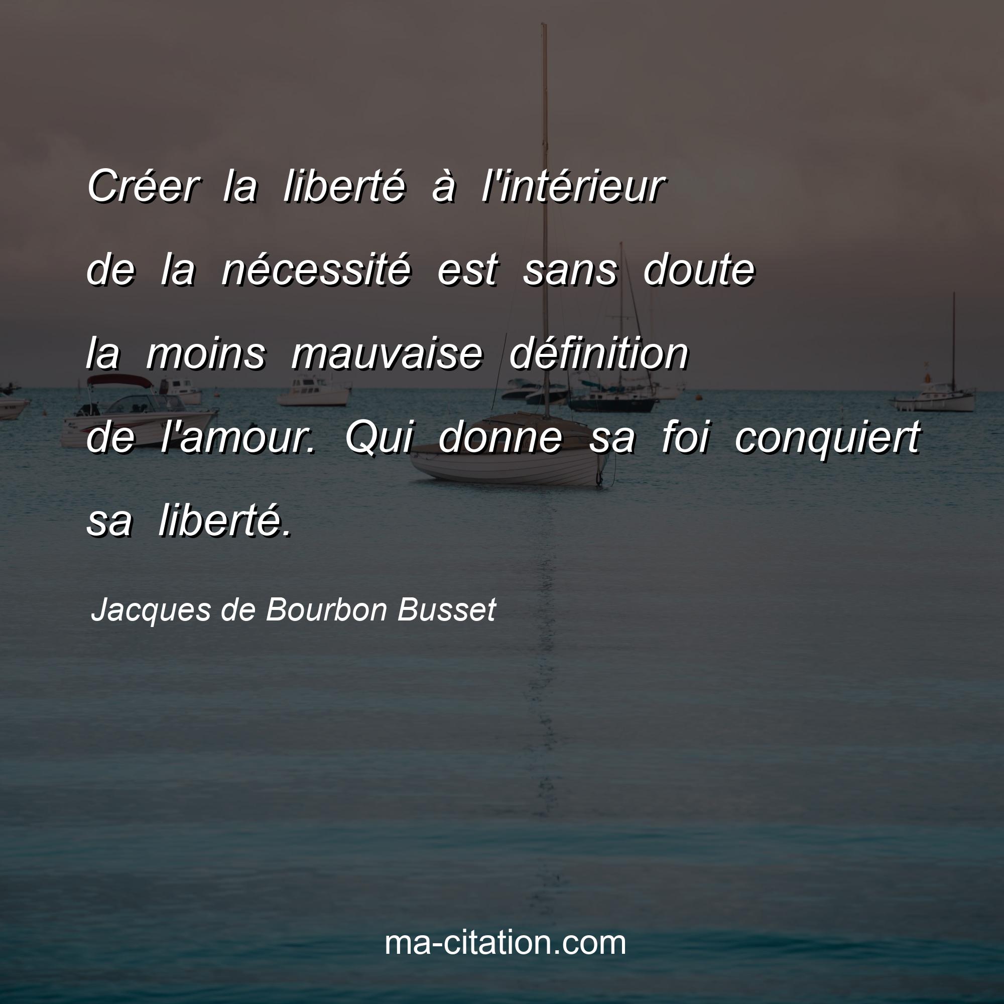 Citation sur la vie de Jacques de Bourbon Busset :Créer la liberté à l'intérieur de la nécessité est sans doute la moins mauvaise définition de l'amour. Qui donne sa foi conquiert sa liberté.