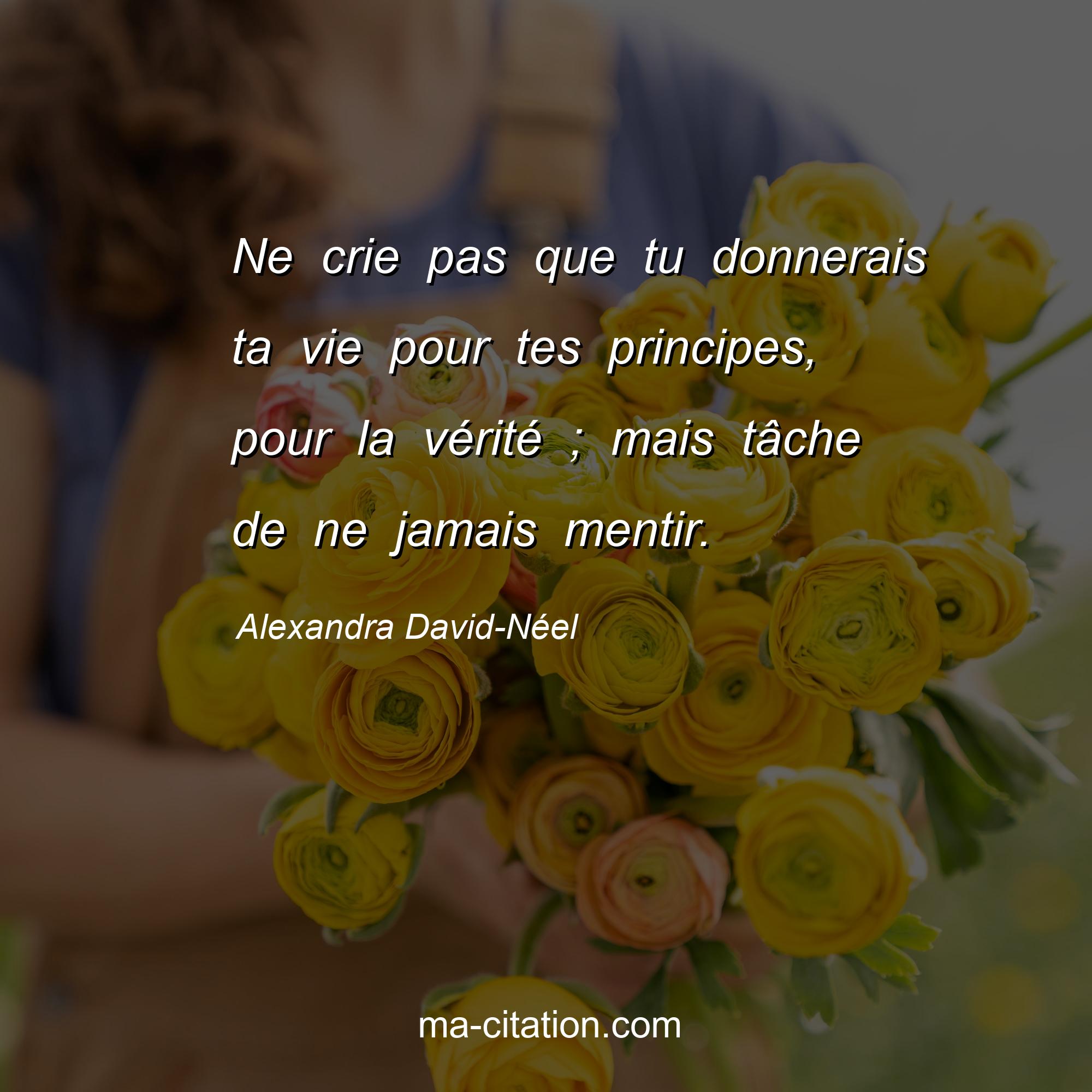 Citation sur la vie d'Alexandra David-Néel :Ne crie pas que tu donnerais ta vie pour tes principes, pour la vérité ; mais tâche de ne jamais mentir.