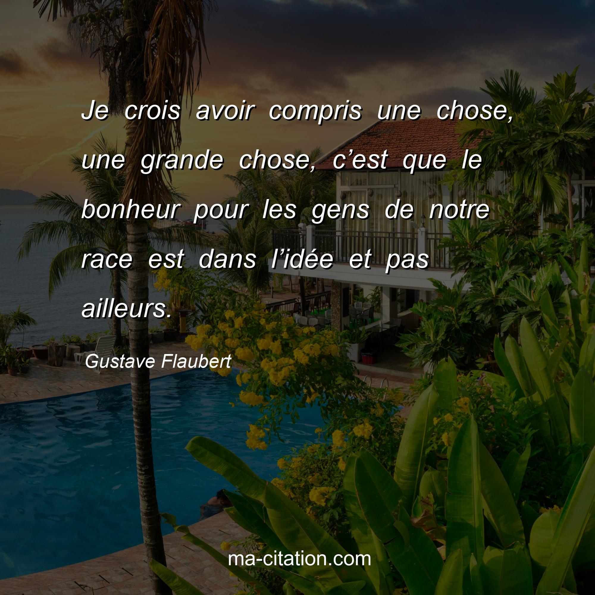 Citation sur la vie de Gustave Flaubert :Je crois avoir compris une chose, une grande chose, c’est que le bonheur pour les gens de notre race est dans l’idée et pas ailleurs.