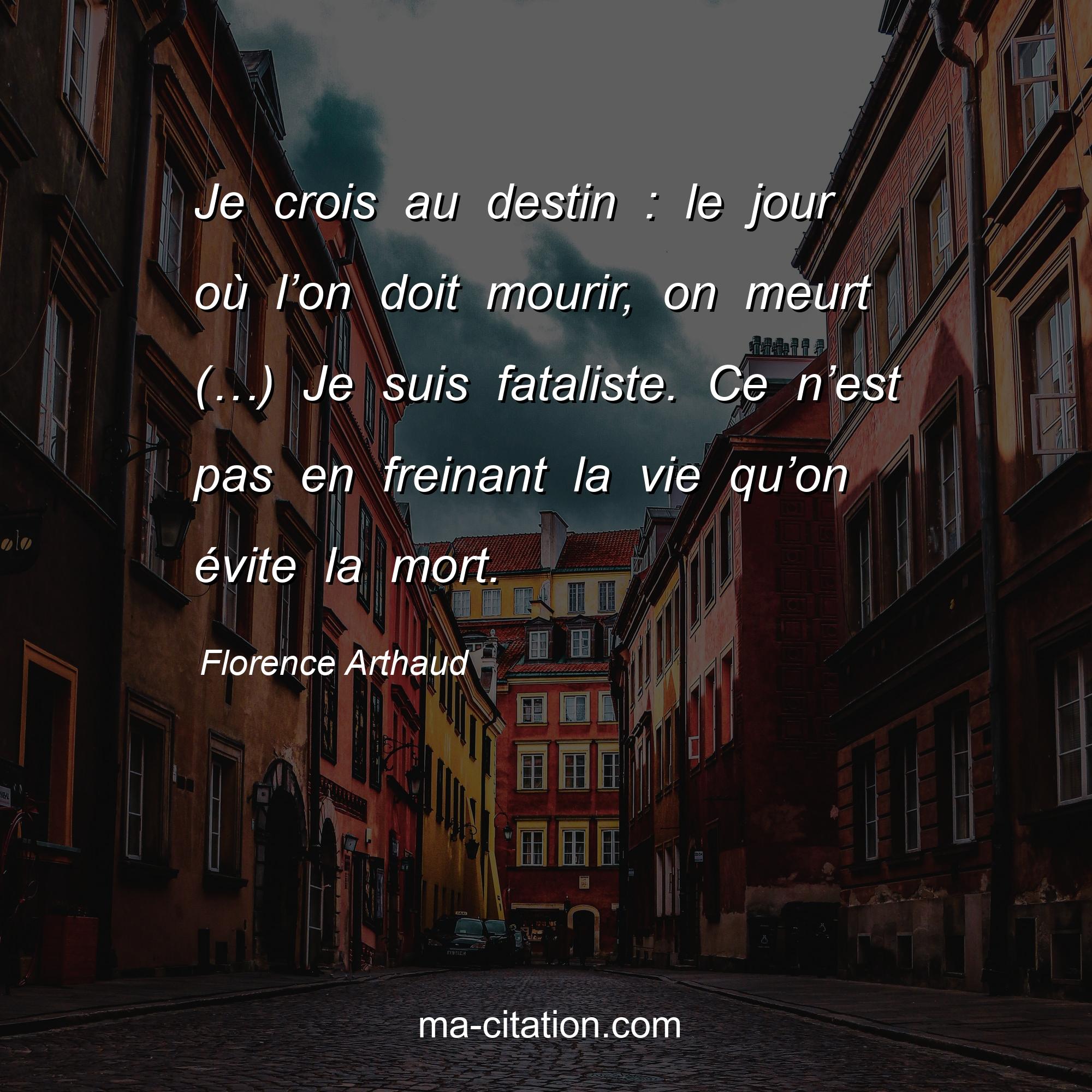 Citation sur la vie de Florence Arthaud :Je crois au destin : le jour où l’on doit mourir, on meurt (…) Je suis fataliste. Ce n’est pas en freinant la vie qu’on évite la mort.