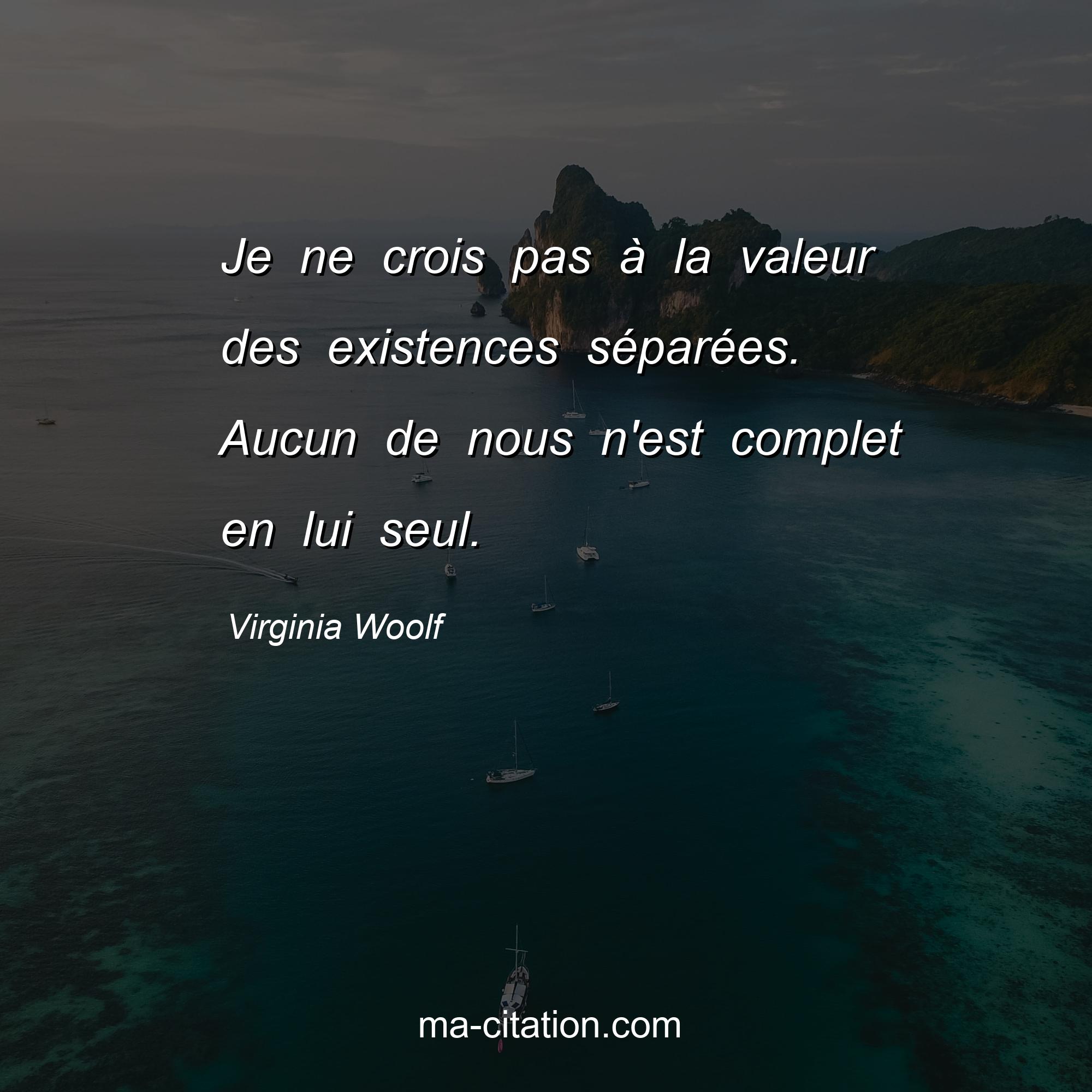 Virginia Woolf est l'auteur de la citation sur la vie "Je ne crois pas à la valeur des existences séparées. Aucun de nous n'est complet en lui seul.".