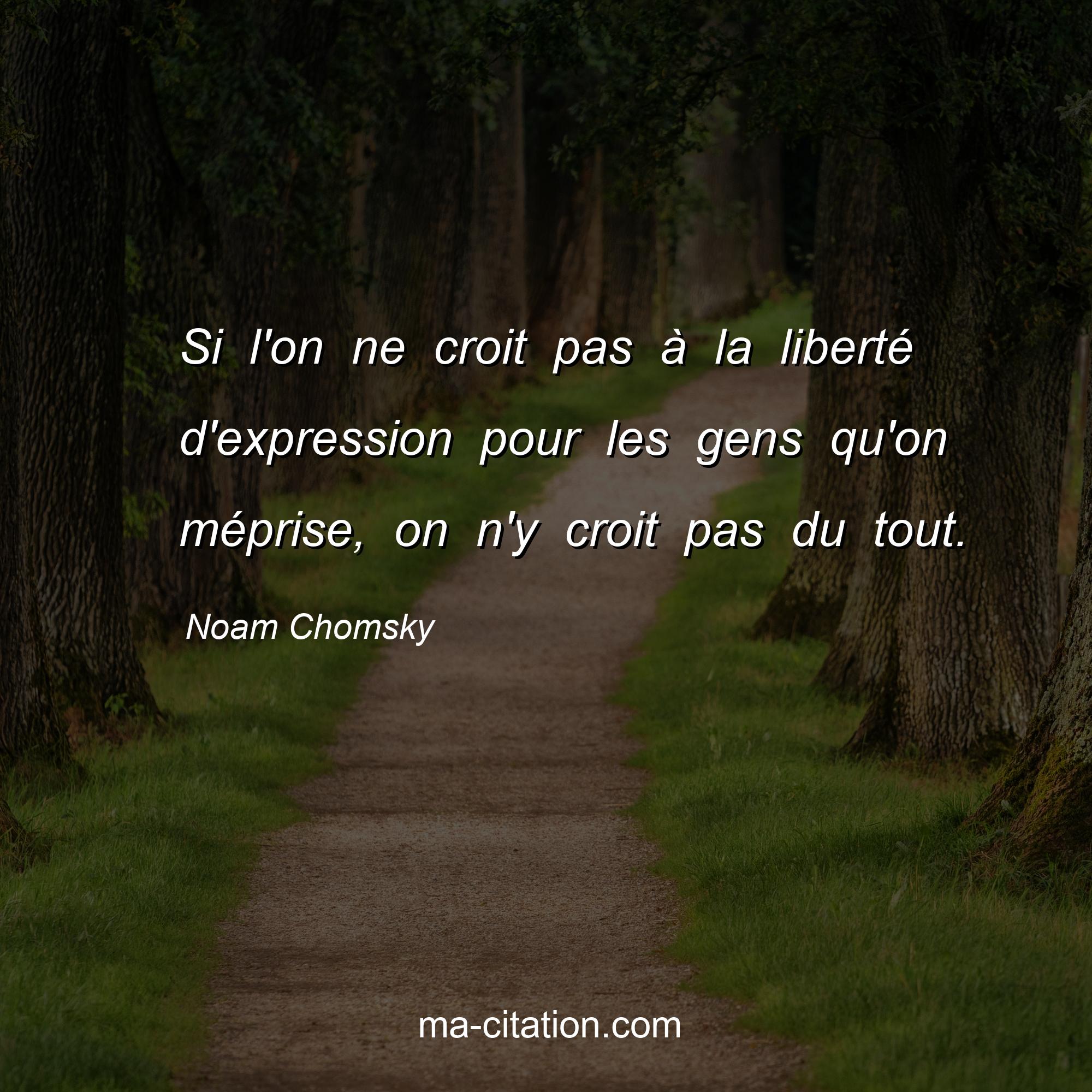 Citation sur la vie de Noam Chomsky :Si l'on ne croit pas à la liberté d'expression pour les gens qu'on méprise, on n'y croit pas du tout.