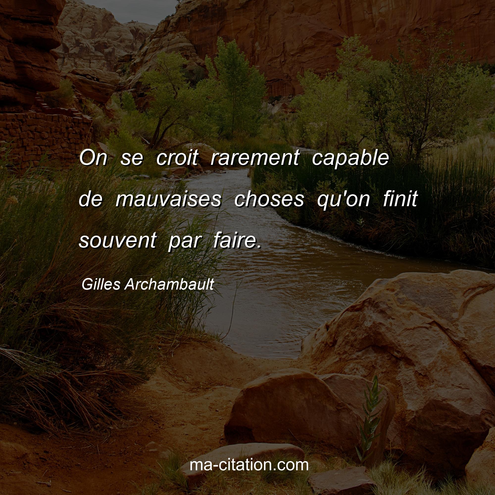 Citation sur la vie de Gilles Archambault :On se croit rarement capable de mauvaises choses qu'on finit souvent par faire.
