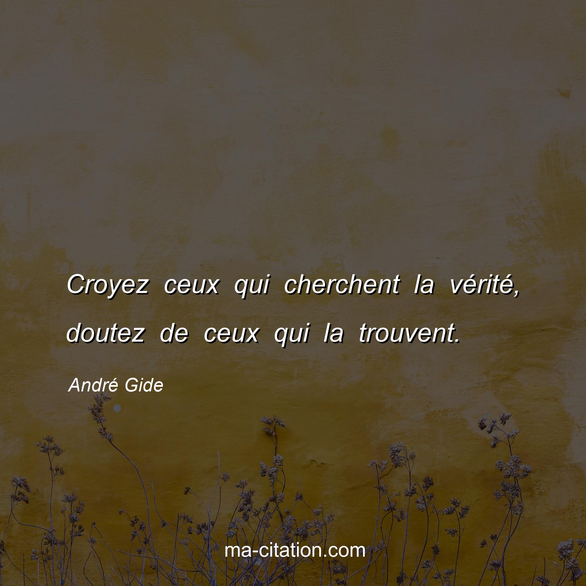 Citation sur la vie d'André Gide :Croyez ceux qui cherchent la vérité, doutez de ceux qui la trouvent.