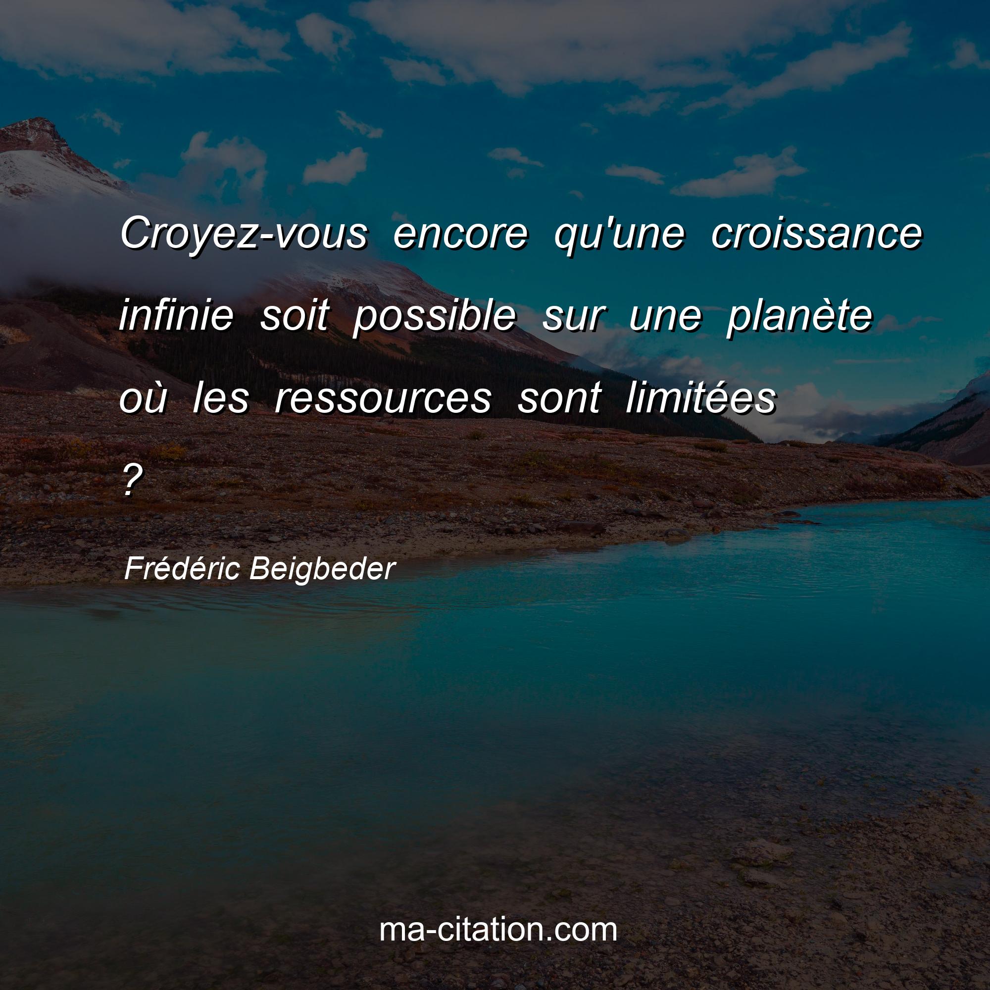 Citation sur la vie de Frédéric Beigbeder :Croyez-vous encore qu'une croissance infinie soit possible sur une planète où les ressources sont limitées ?