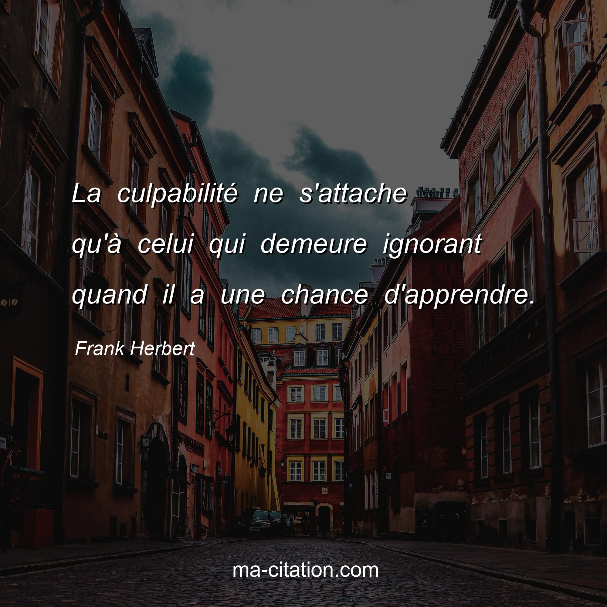 Frank Herbert est l'auteur de la citation sur la vie "La culpabilité ne s'attache qu'à celui qui demeure ignorant quand il a une chance d'apprendre.".