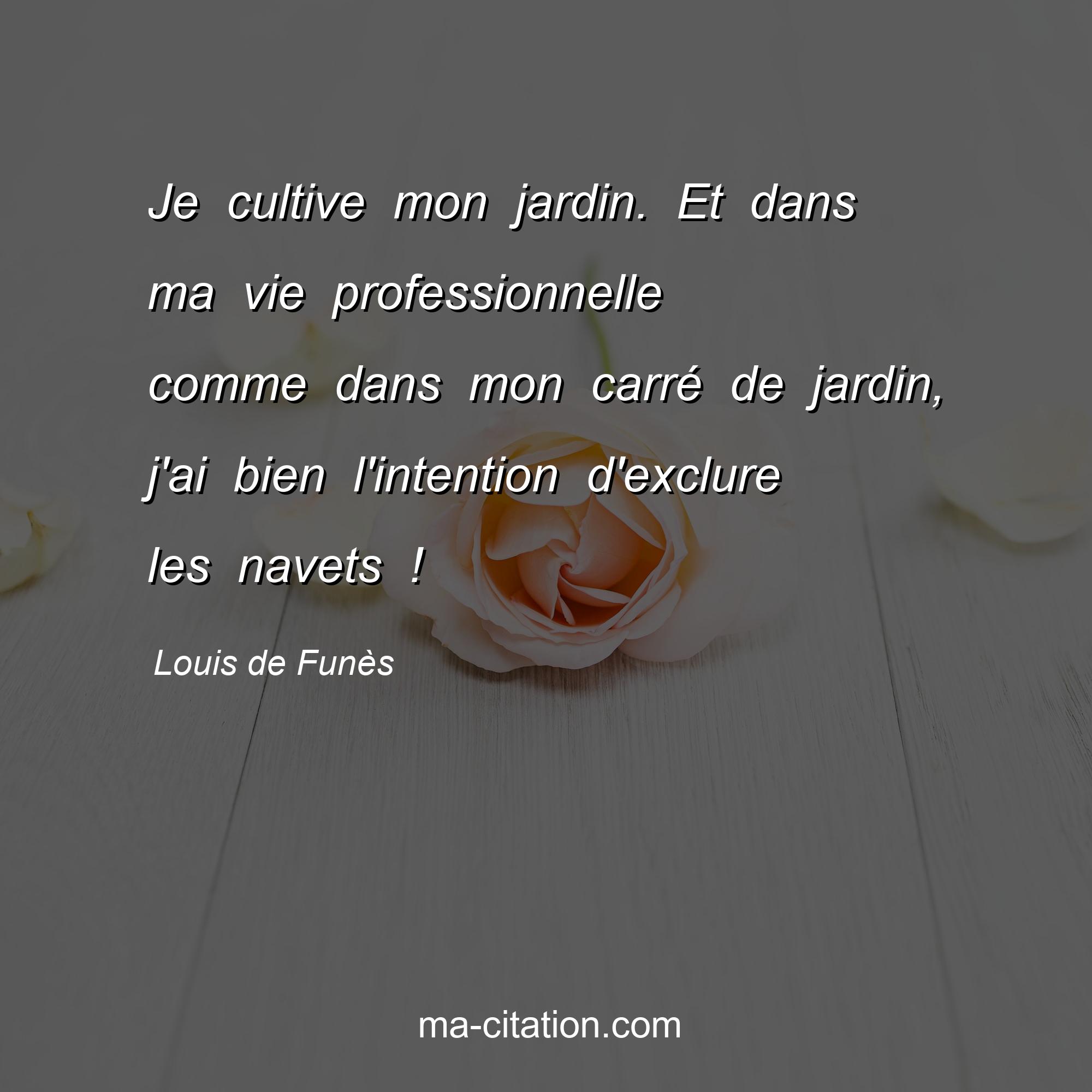 Citation sur la vie de Louis de Funès :Je cultive mon jardin. Et dans ma vie professionnelle comme dans mon carré de jardin, j'ai bien l'intention d'exclure les navets !