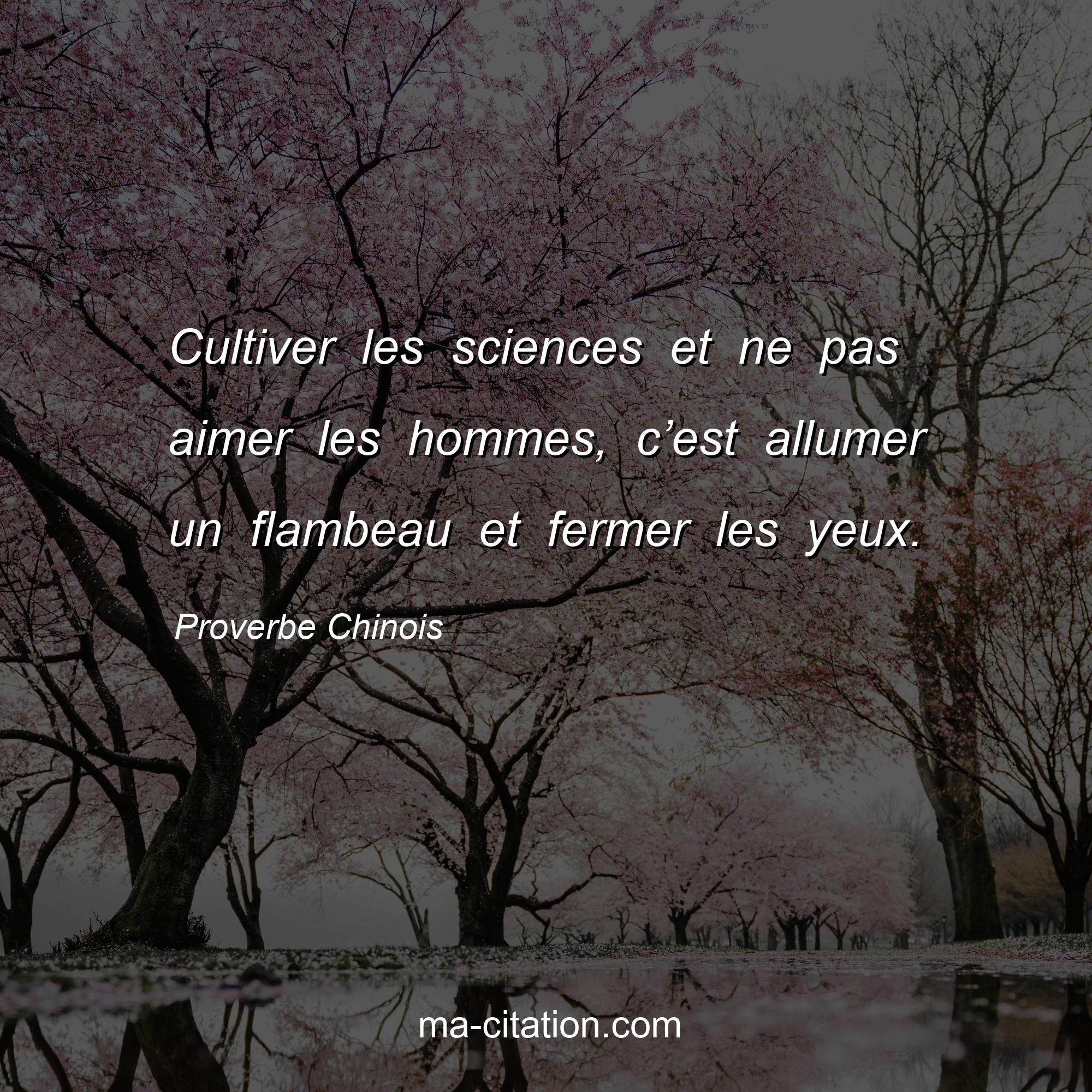 Proverbe Chinois sur la vie :Cultiver les sciences et ne pas aimer les hommes, c’est allumer un flambeau et fermer les yeux.
