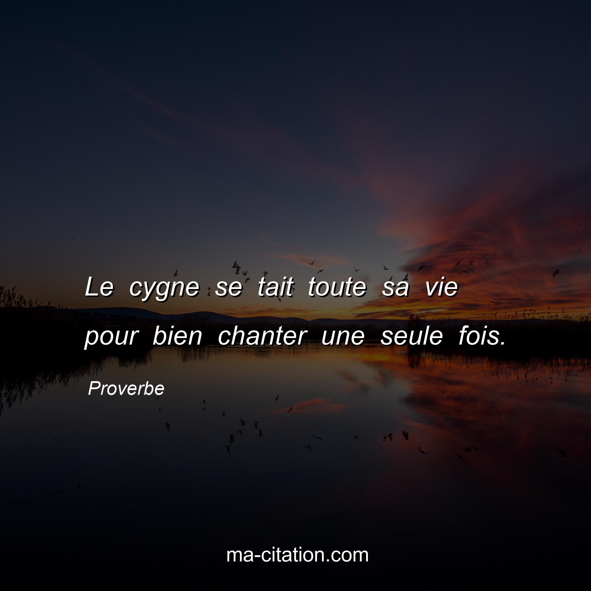 Proverbe sur la vie :Le cygne se tait toute sa vie pour bien chanter une seule fois.