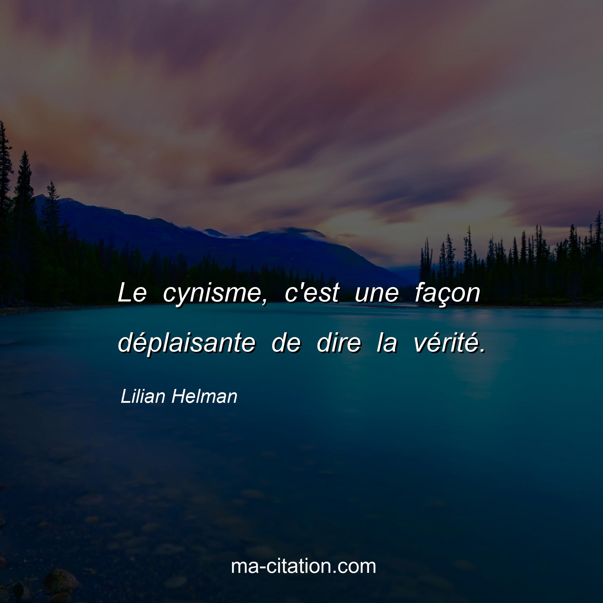 Citation sur la vie de Lilian Helman :Le cynisme, c'est une façon déplaisante de dire la vérité.