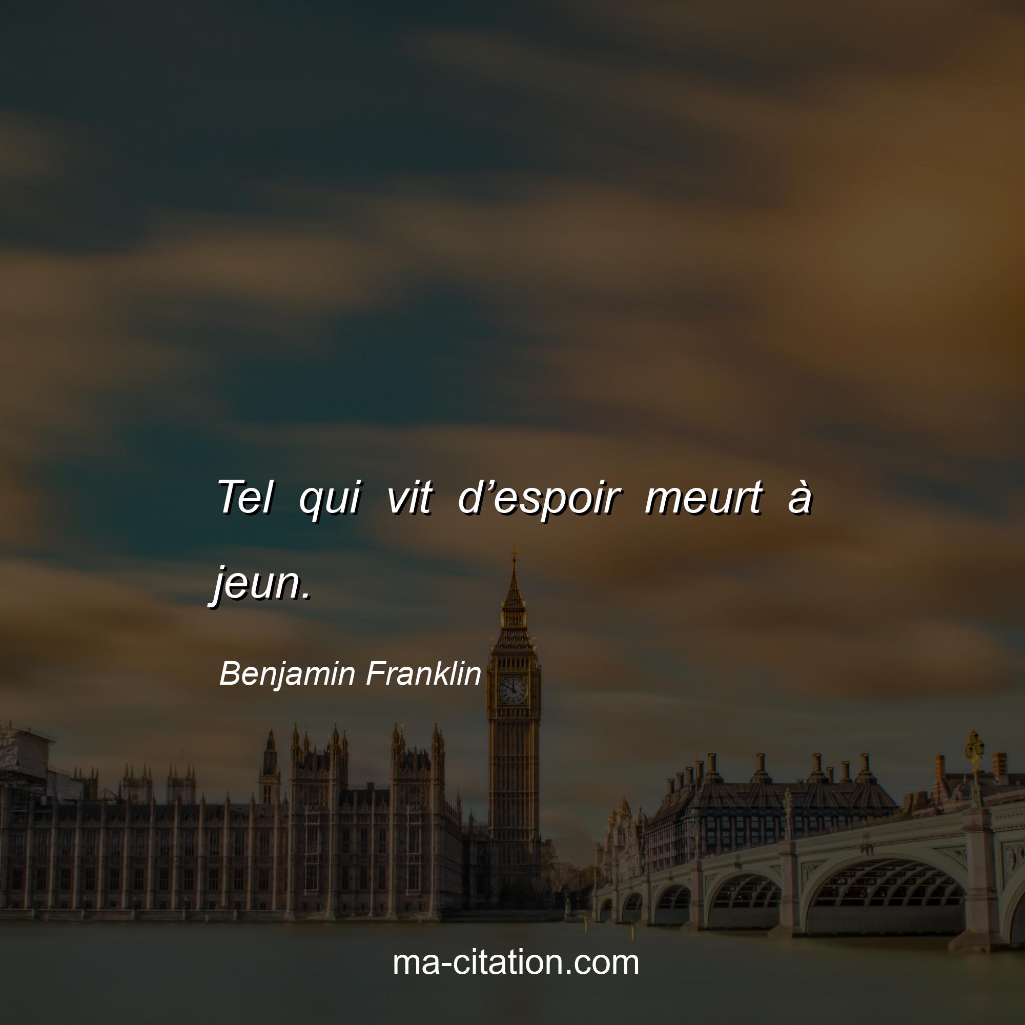 Citation sur la vie de Benjamin Franklin :Tel qui vit d’espoir meurt à jeun.
