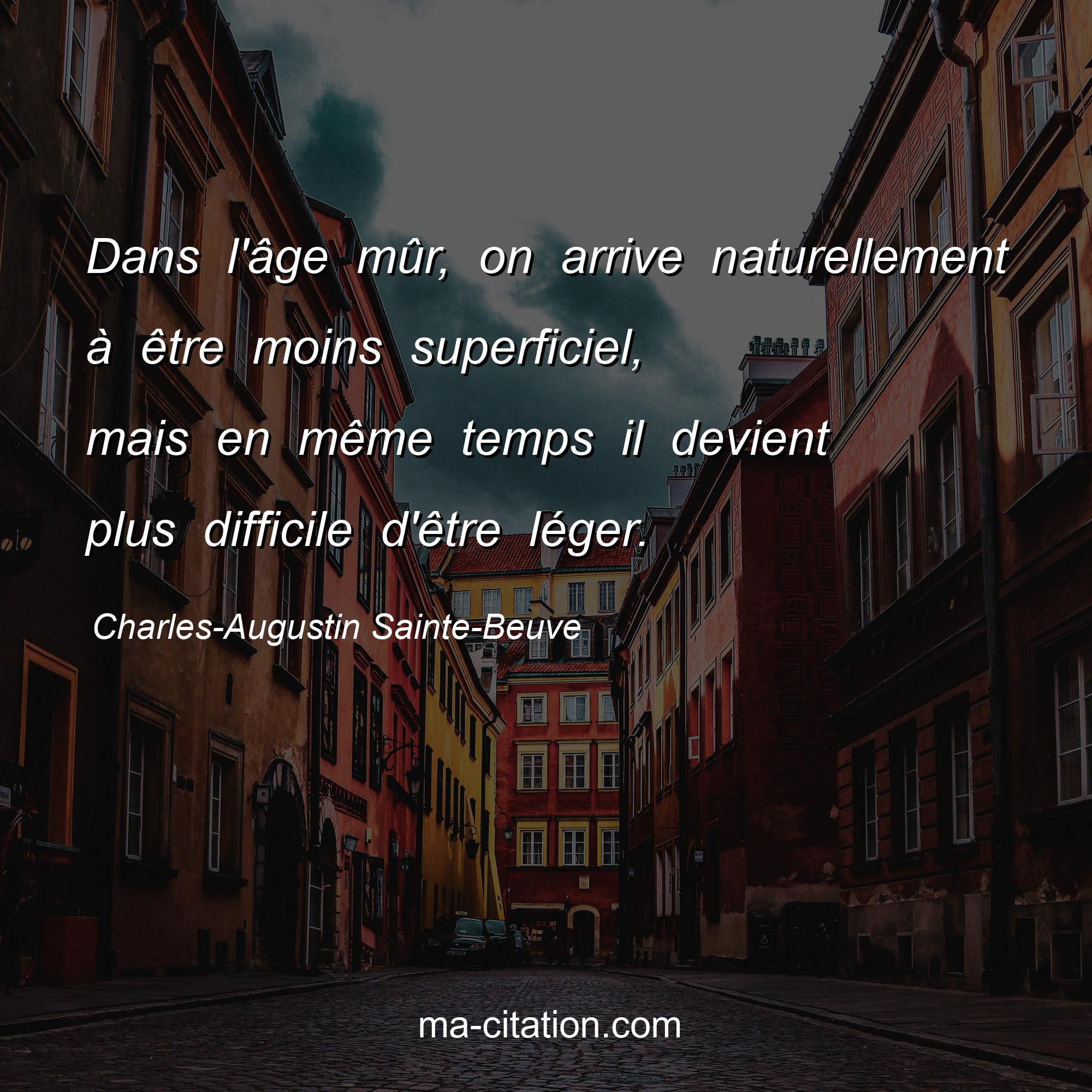 Citation sur la vie de Charles-Augustin Sainte-Beuve :Dans l'âge mûr, on arrive naturellement à être moins superficiel, mais en même temps il devient plus difficile d'être léger.