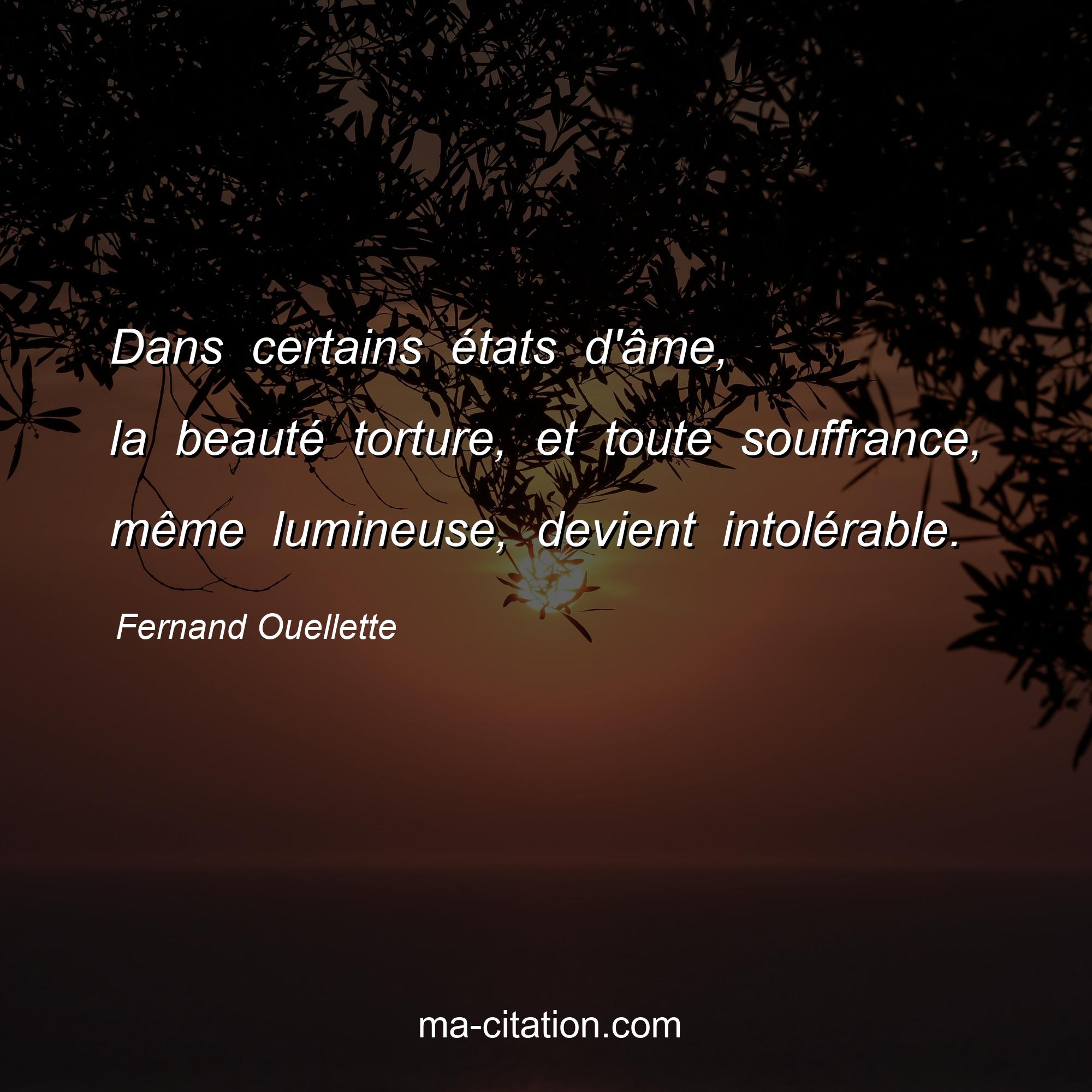 Citation sur la vie de Fernand Ouellette :Dans certains états d'âme, la beauté torture, et toute souffrance, même lumineuse, devient intolérable.
