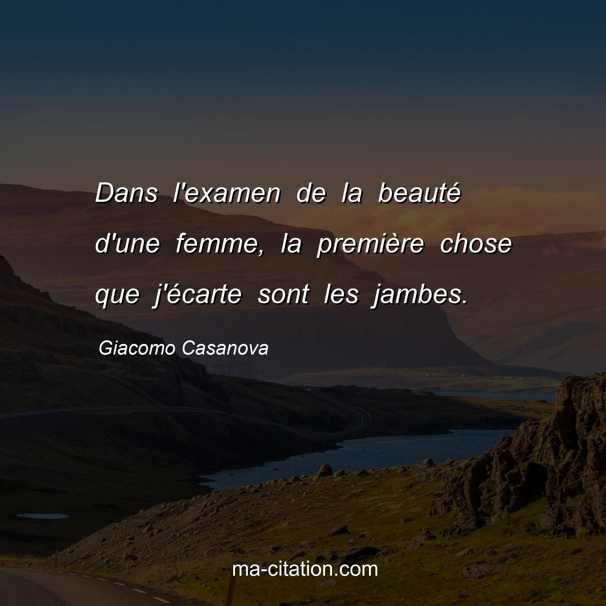 Citation sur la vie de Giacomo Casanova :Dans l'examen de la beauté d'une femme, la première chose que j'écarte sont les jambes.