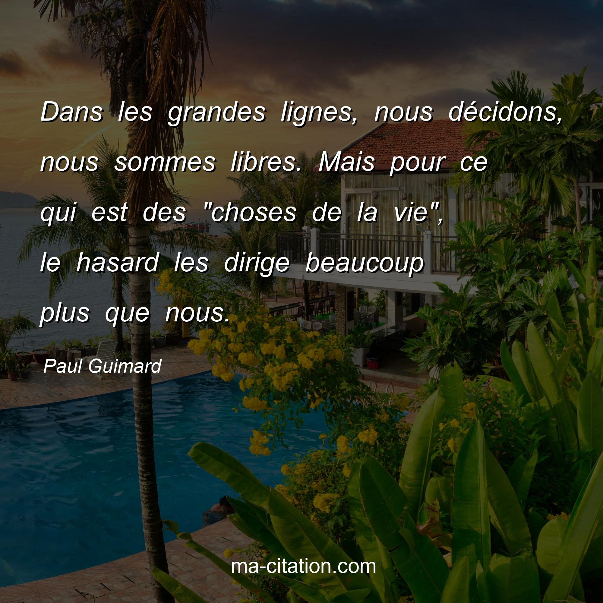 Citation sur la vie de Paul Guimard :Dans les grandes lignes, nous décidons, nous sommes libres. Mais pour ce qui est des "choses de la vie", le hasard les dirige beaucoup plus que nous.