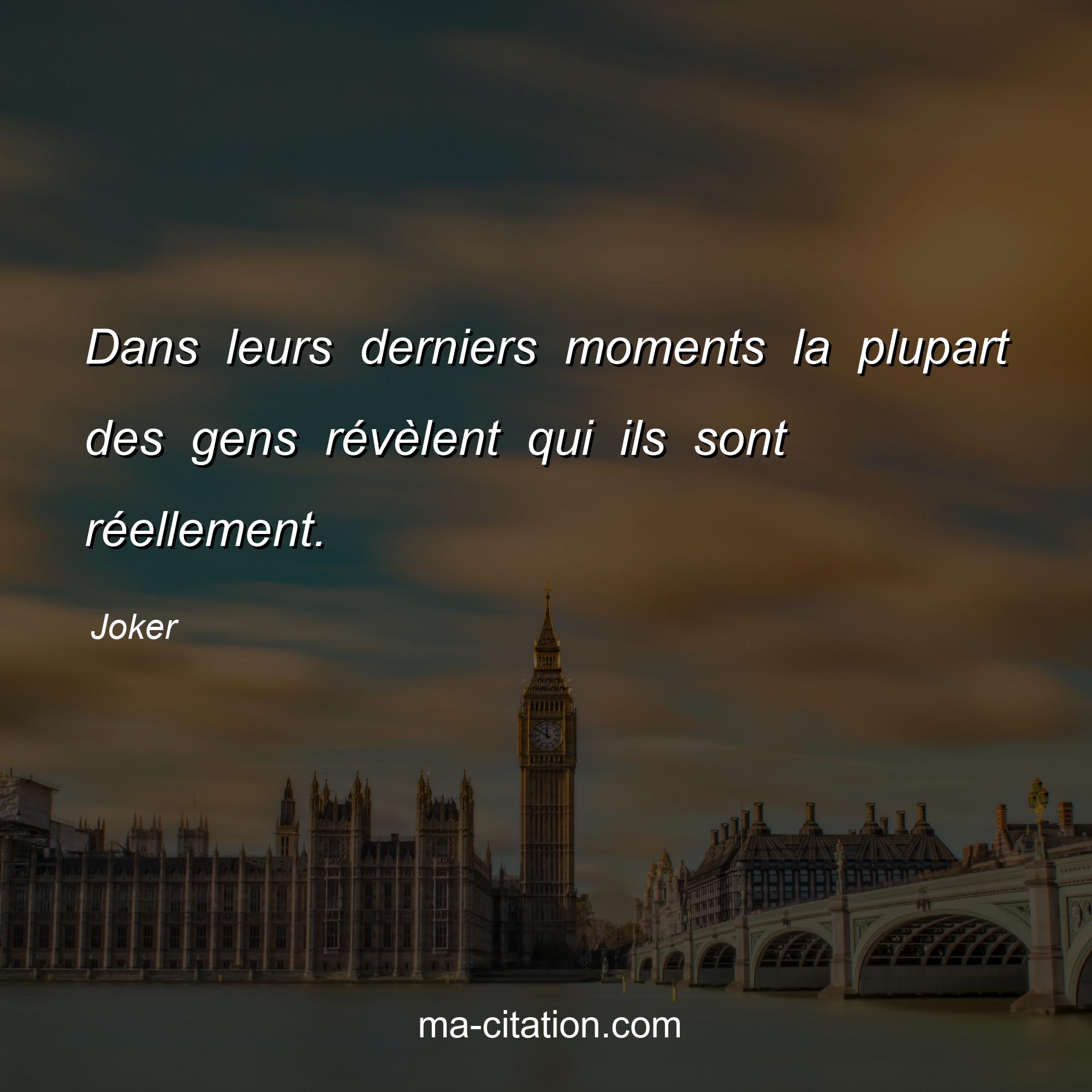 Joker est l'auteur de la citation sur la vie "Dans leurs derniers moments la plupart des gens révèlent qui ils sont réellement.".