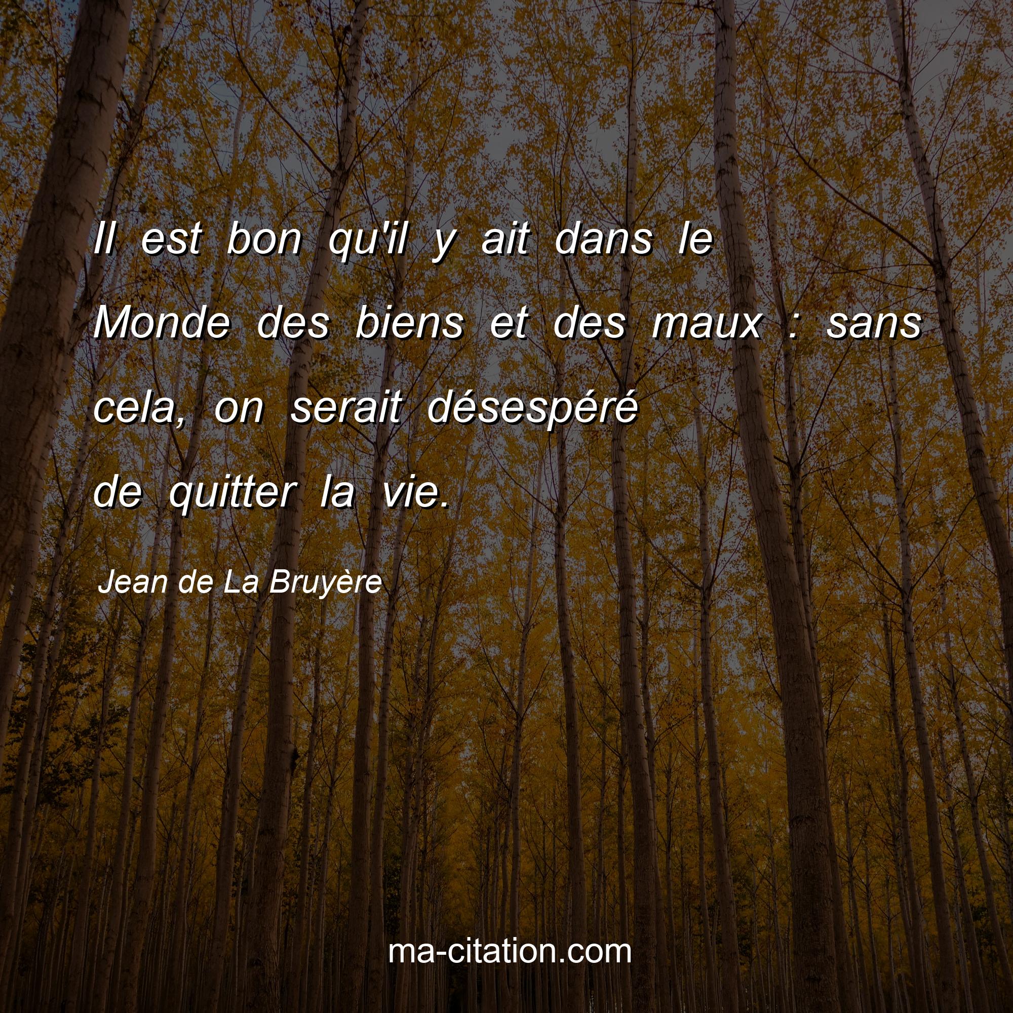 Citation sur la vie de Jean de La Bruyère :Il est bon qu'il y ait dans le Monde des biens et des maux : sans cela, on serait désespéré de quitter la vie.