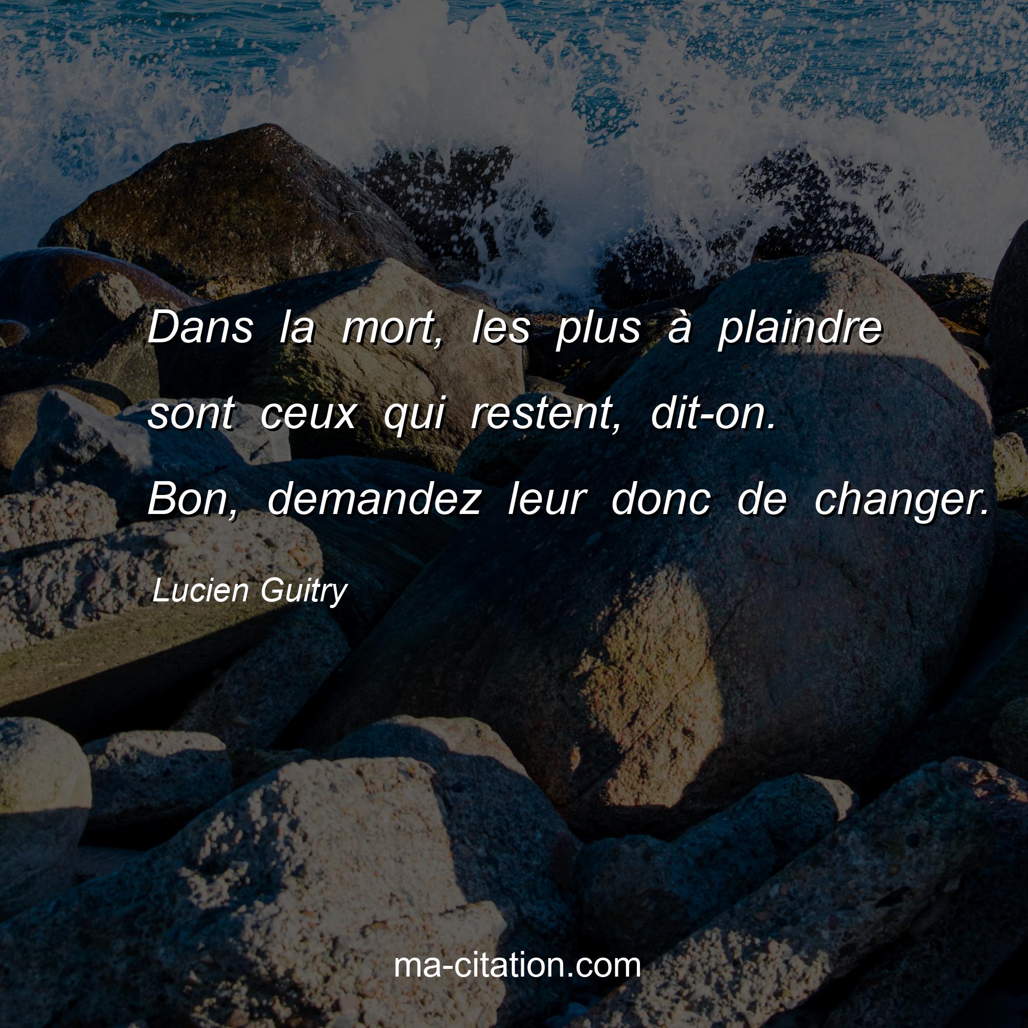 Citation sur la vie de Lucien Guitry :Dans la mort, les plus à plaindre sont ceux qui restent, dit-on. Bon, demandez leur donc de changer.