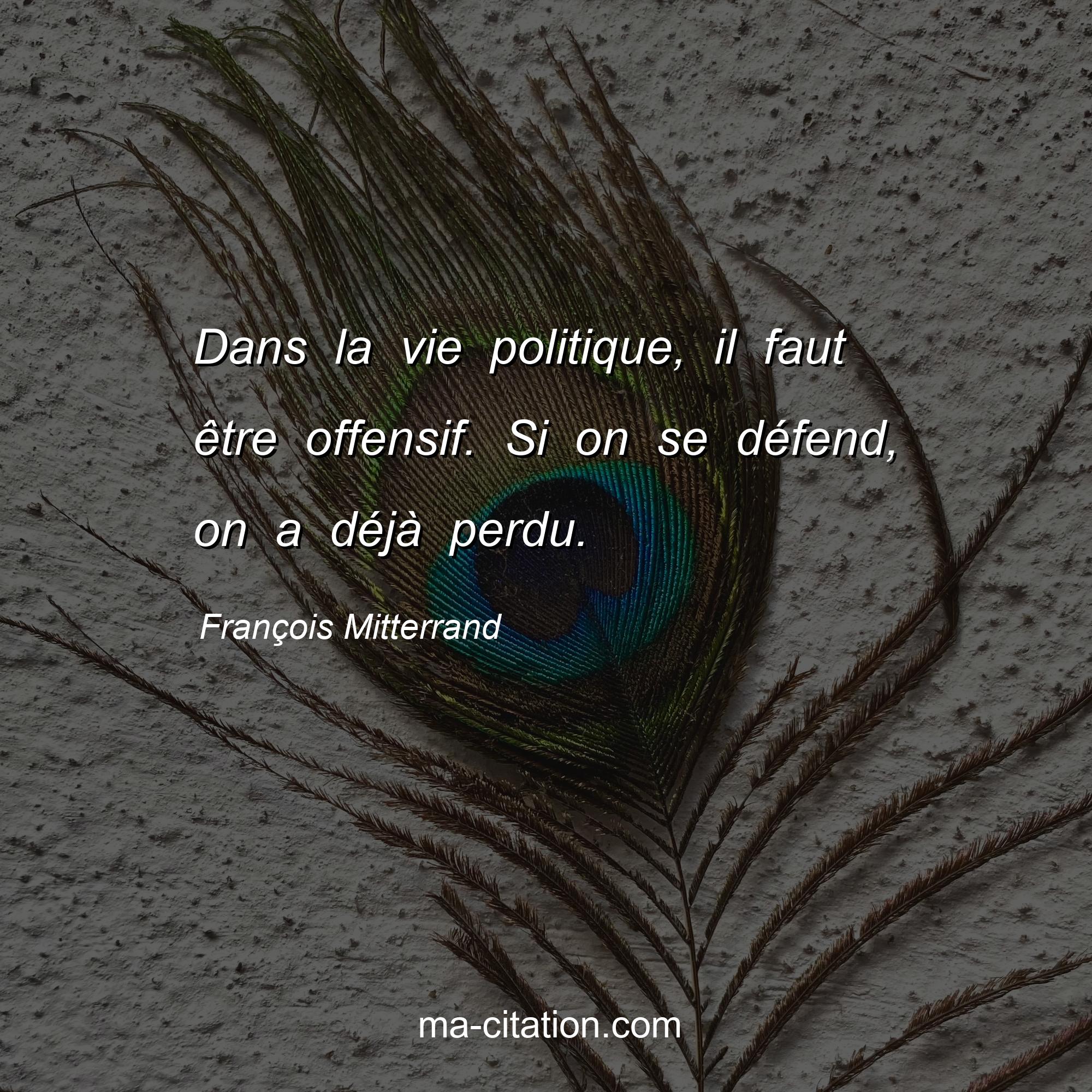 Citation sur la vie de François Mitterrand :Dans la vie politique, il faut être offensif. Si on se défend, on a déjà perdu.