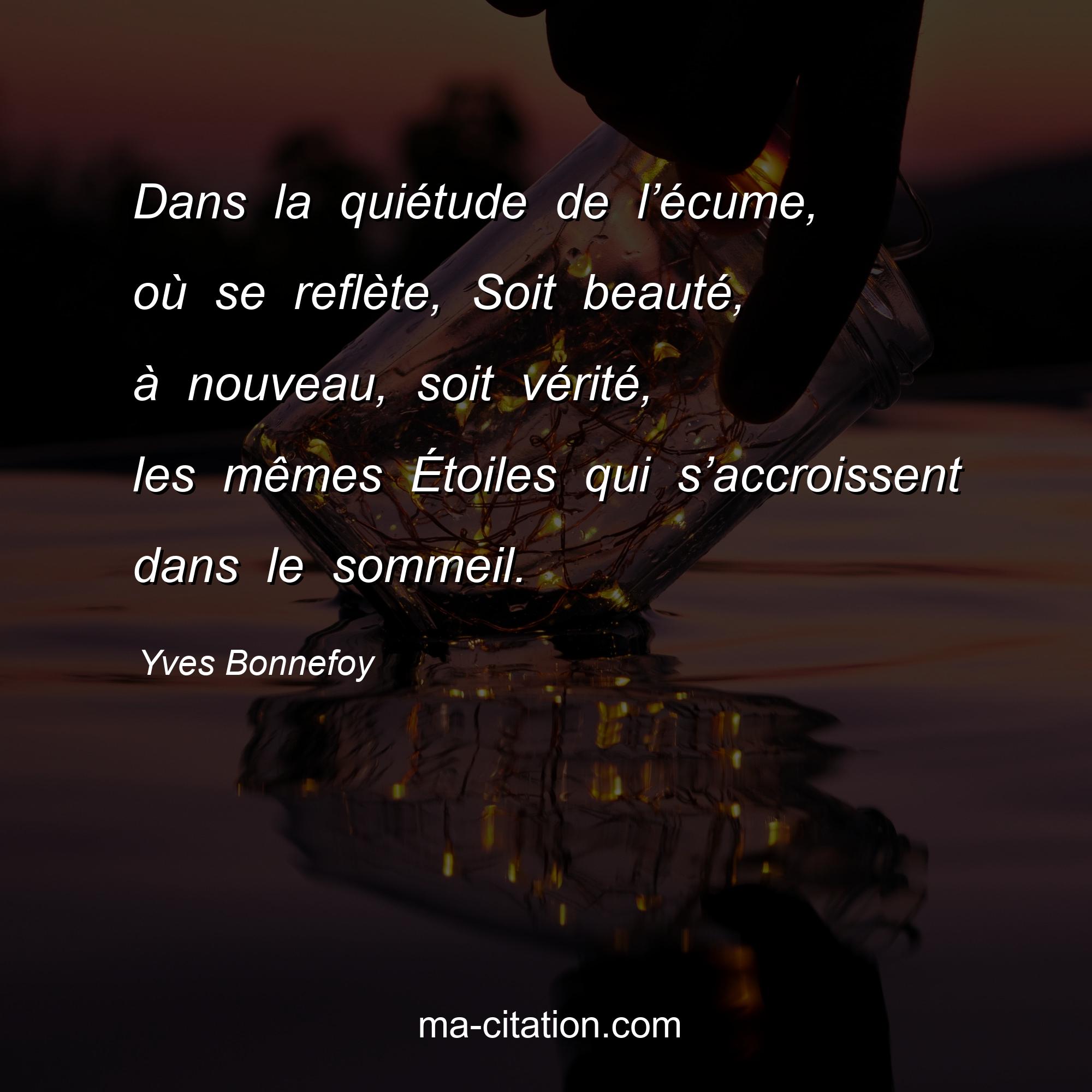 Citation sur la vie de Yves Bonnefoy :Dans la quiétude de l’écume, où se reflète, Soit beauté, à nouveau, soit vérité, les mêmes Étoiles qui s’accroissent dans le sommeil.