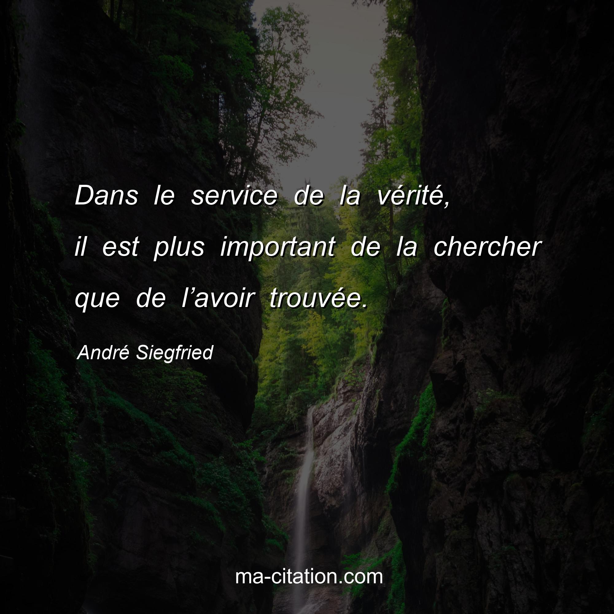 Citation sur la vie d'André Siegfried :Dans le service de la vérité, il est plus important de la chercher que de l’avoir trouvée.