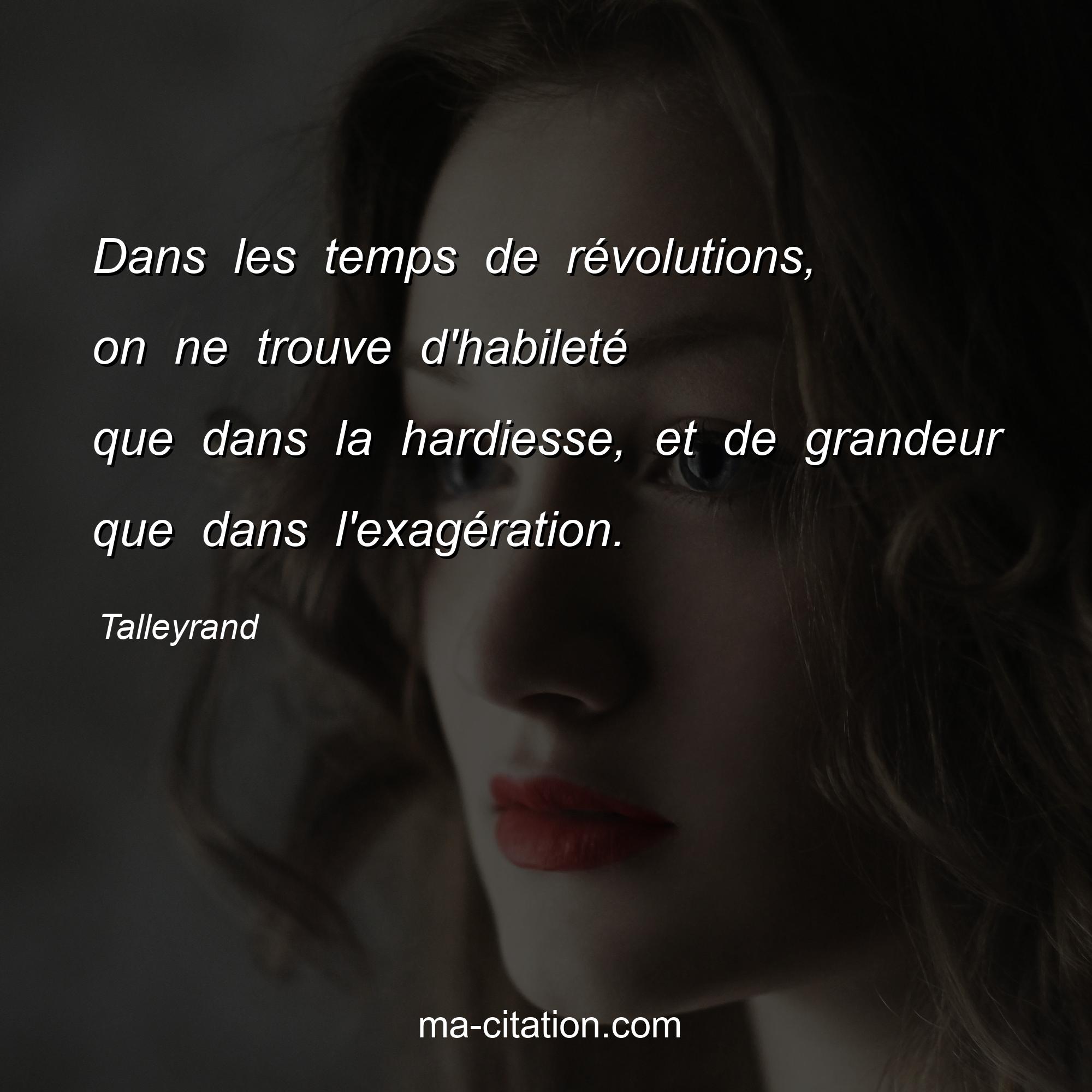 Citation sur la vie de Talleyrand :Dans les temps de révolutions, on ne trouve d'habileté que dans la hardiesse, et de grandeur que dans l'exagération.