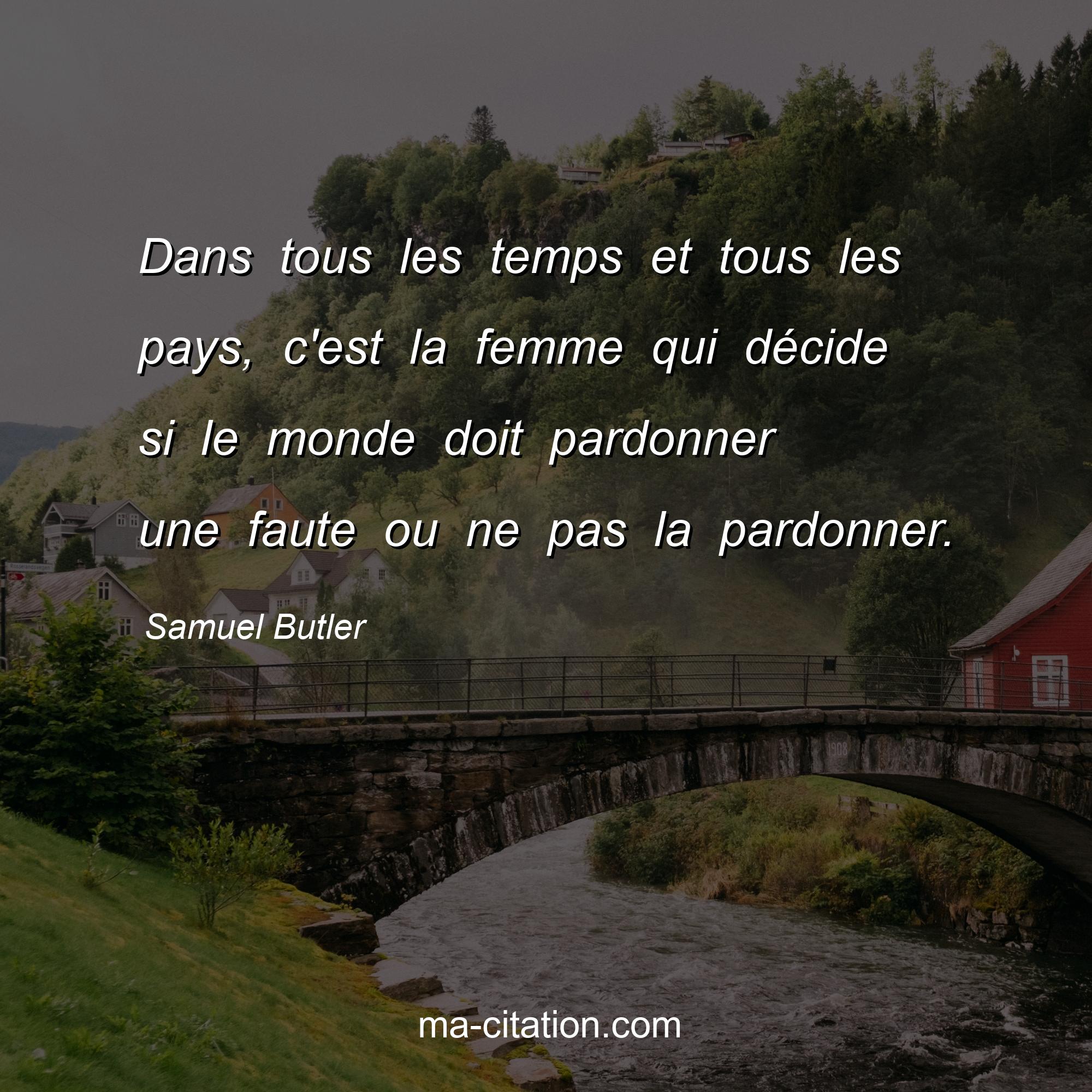 Citation sur la vie de Samuel Butler :Dans tous les temps et tous les pays, c'est la femme qui décide si le monde doit pardonner une faute ou ne pas la pardonner.