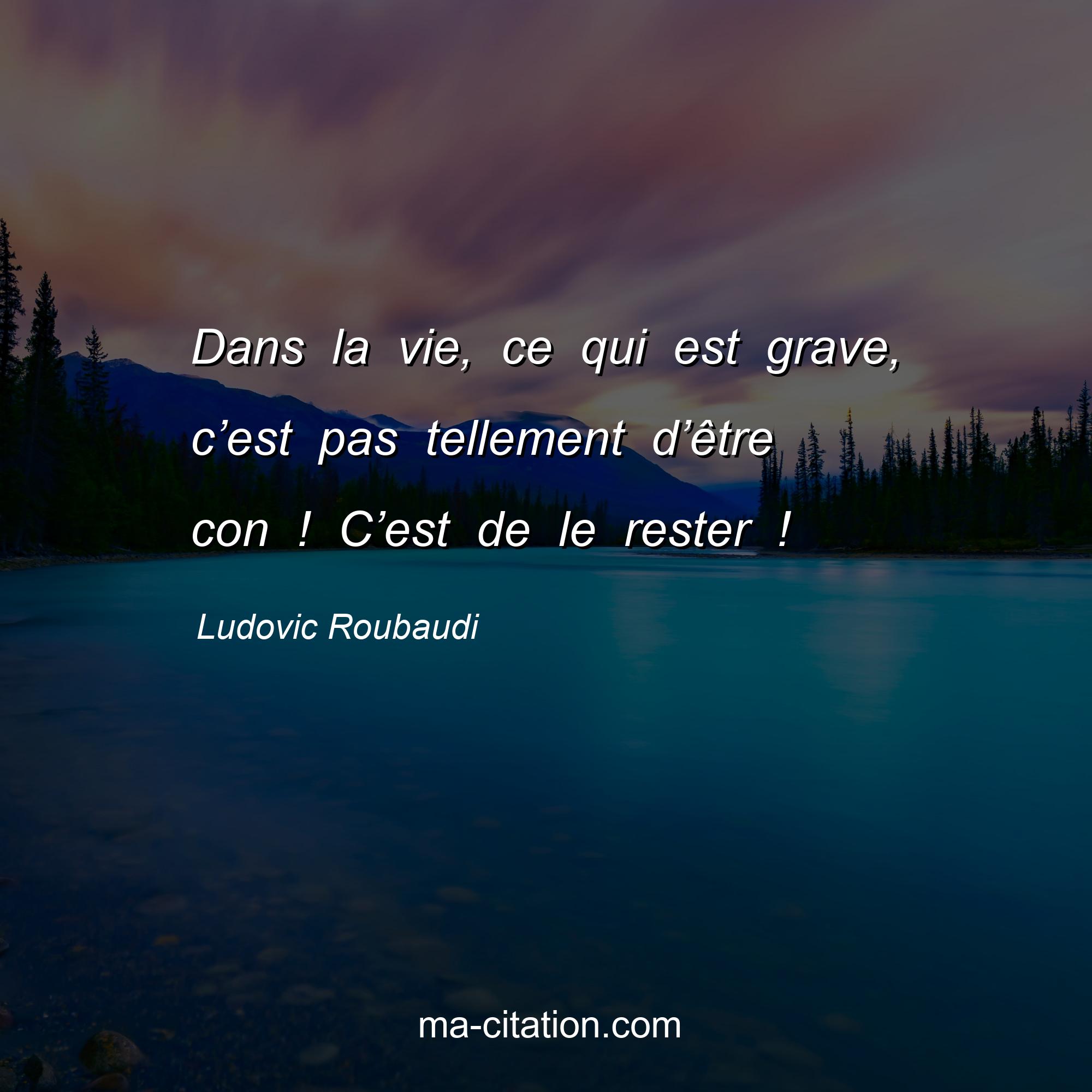 Citation sur la vie de Ludovic Roubaudi :Dans la vie, ce qui est grave, c’est pas tellement d’être con ! C’est de le rester !