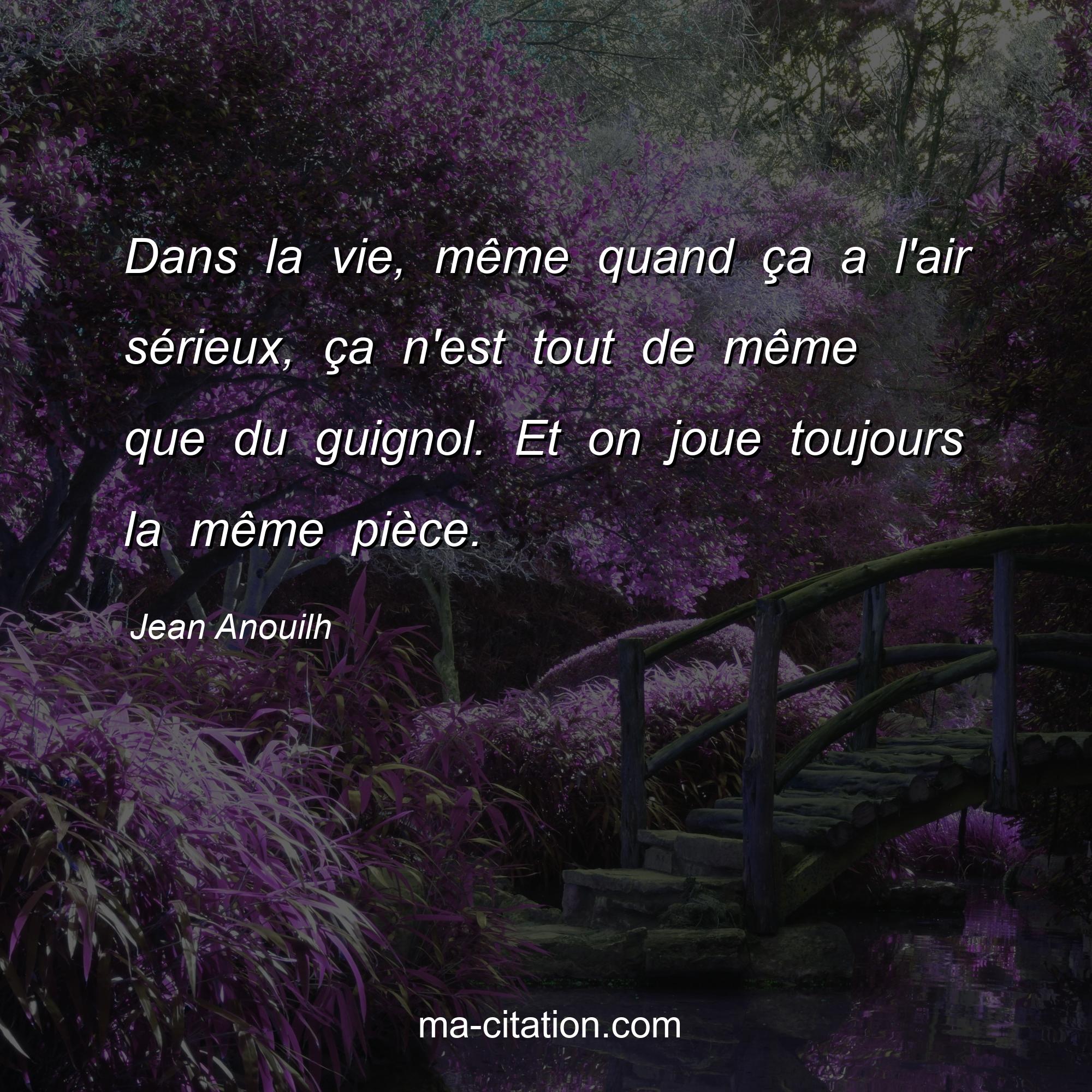 Citation sur la vie de Jean Anouilh :Dans la vie, même quand ça a l'air sérieux, ça n'est tout de même que du guignol. Et on joue toujours la même pièce.