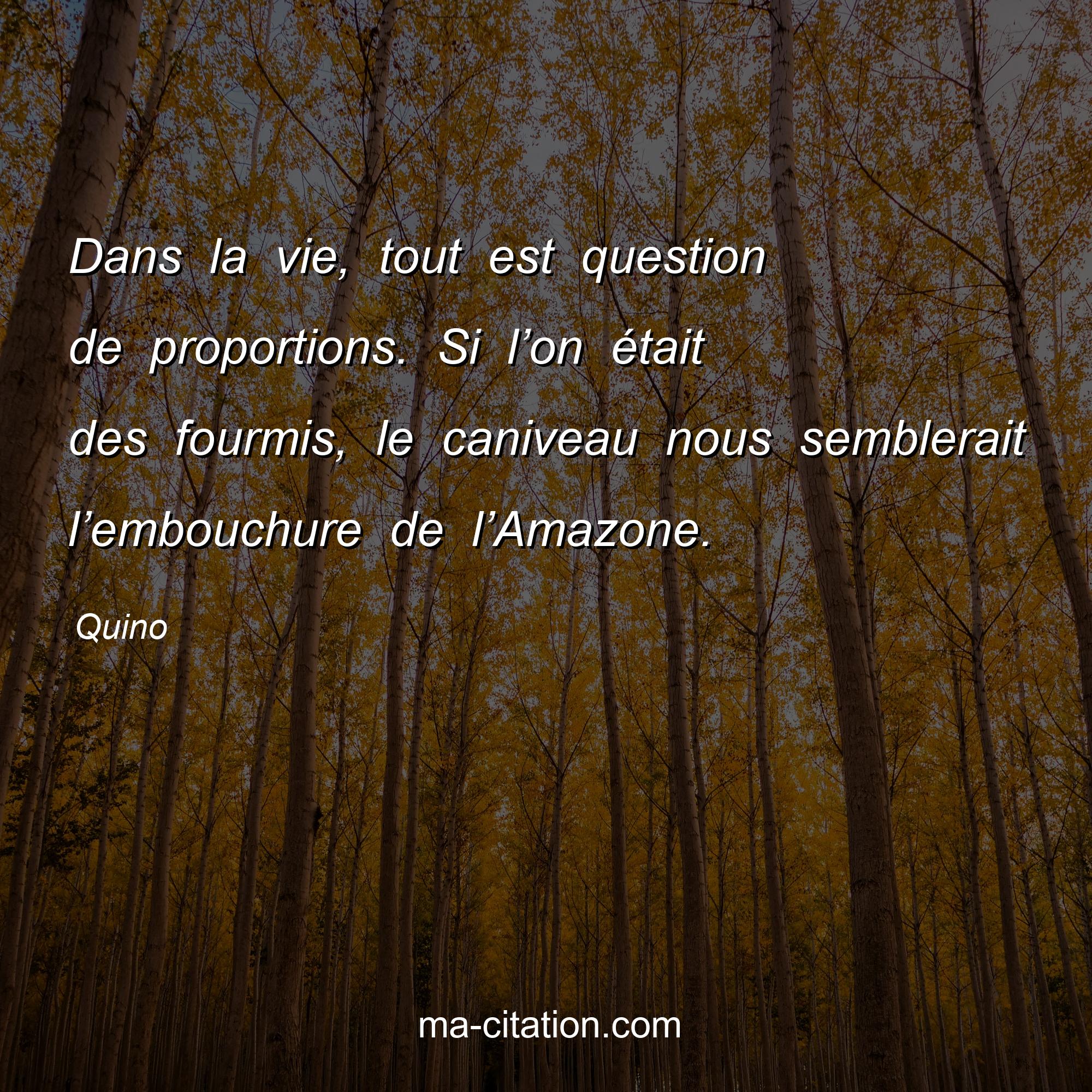Citation sur la vie de Quino :Dans la vie, tout est question de proportions. Si l’on était des fourmis, le caniveau nous semblerait l’embouchure de l’Amazone.