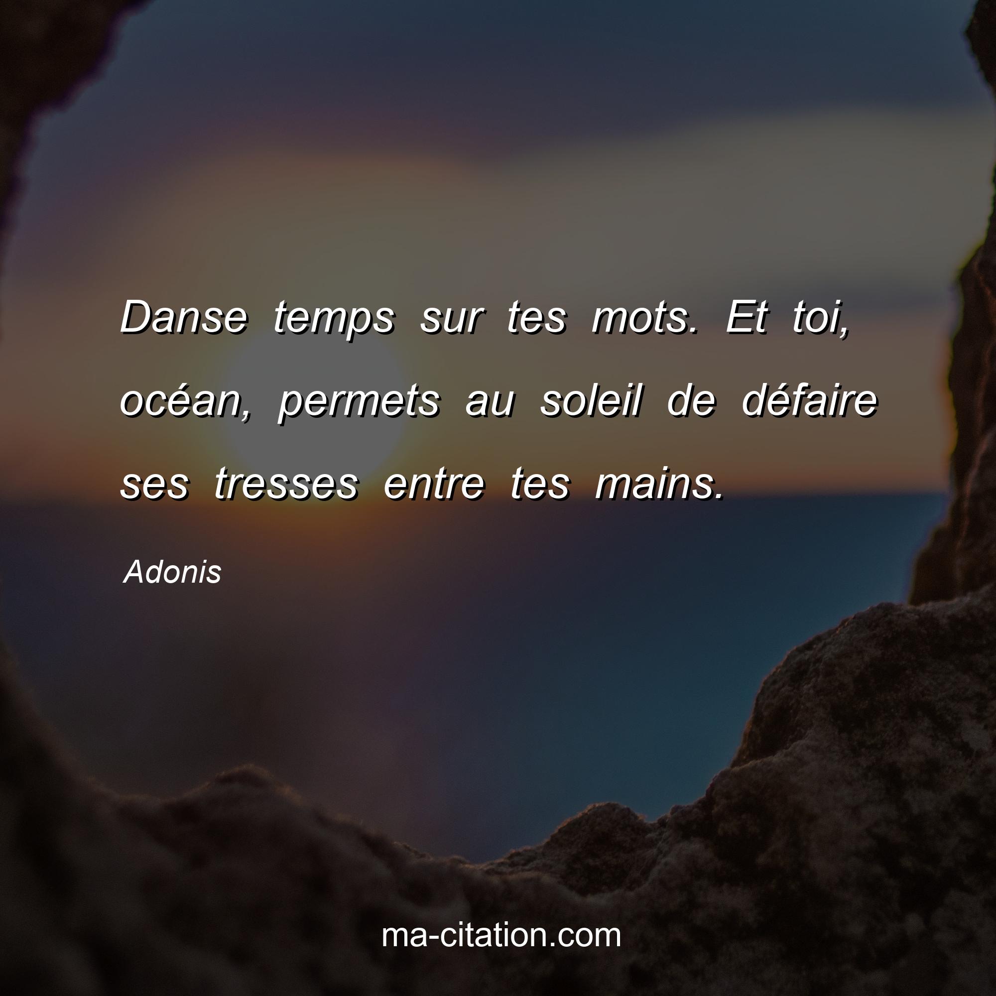 Citation sur la vie d'Adonis :Danse temps sur tes mots. Et toi, océan, permets au soleil de défaire ses tresses entre tes mains.