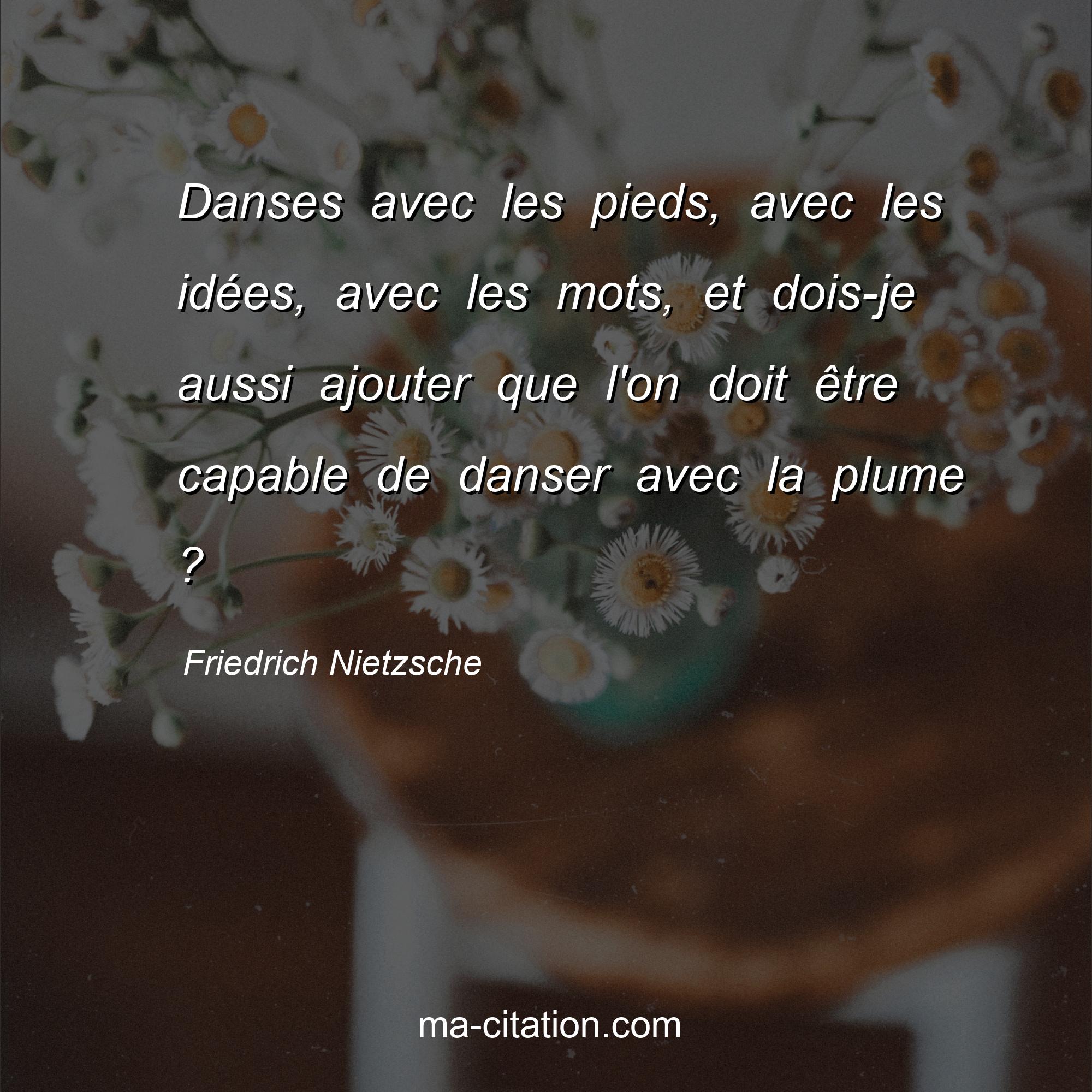 Citation sur la vie de Friedrich Nietzsche :Danses avec les pieds, avec les idées, avec les mots, et dois-je aussi ajouter que l'on doit être capable de danser avec la plume ?