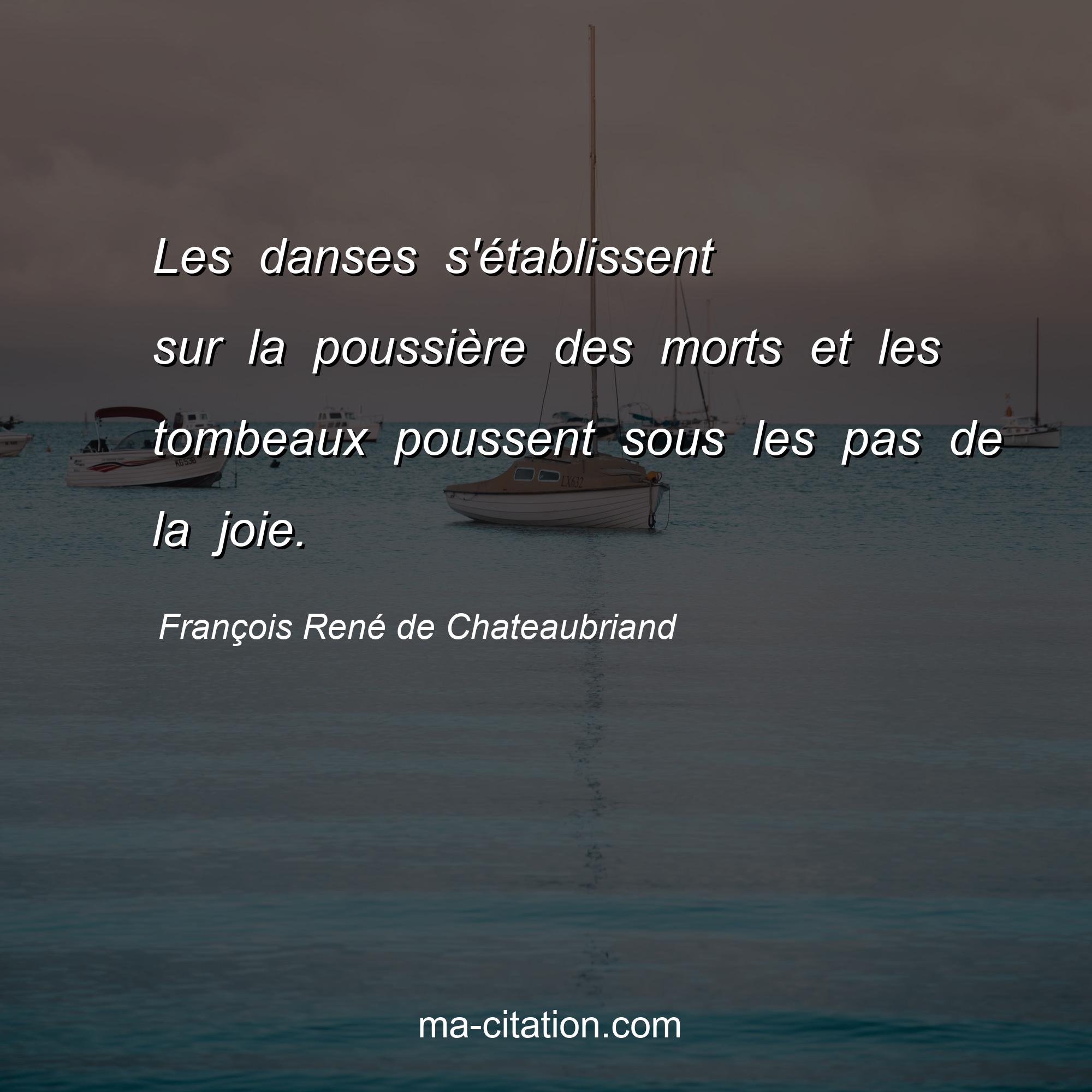 Citation sur la vie de François René de Chateaubriand :Les danses s'établissent sur la poussière des morts et les tombeaux poussent sous les pas de la joie.